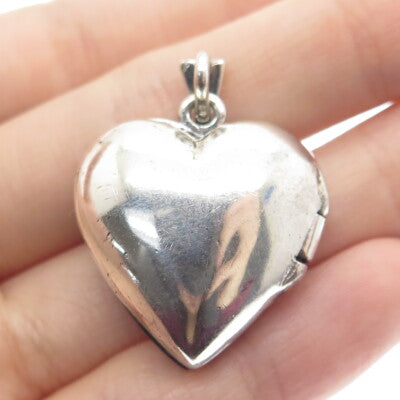925 Sterling Silver Vintage Black Onyx & Marcasite Gem Heart Locket Pendant