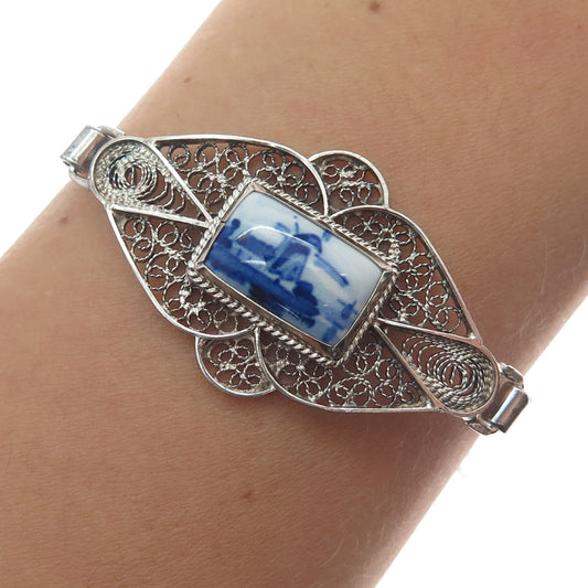925 Sterling Silver Vintage Oval Curb Link Bracelet 7.25"
