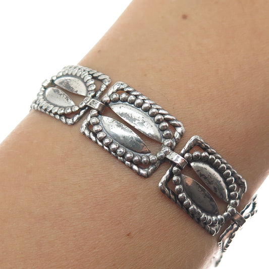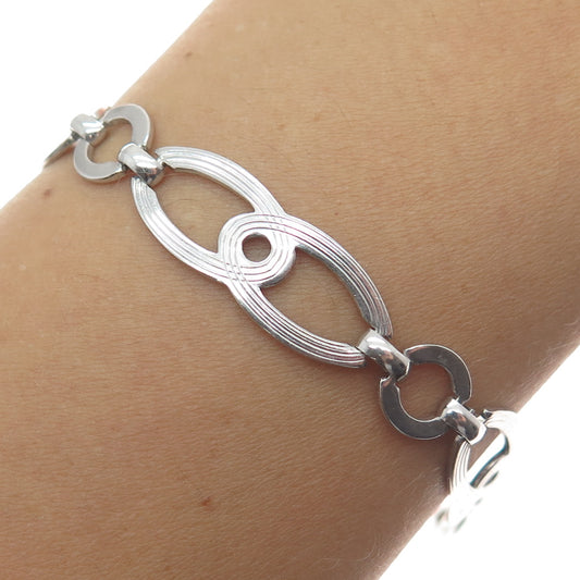 925 Sterling Silver Vintage Italy Circle & Teardrop Link Bracelet 6.75"
