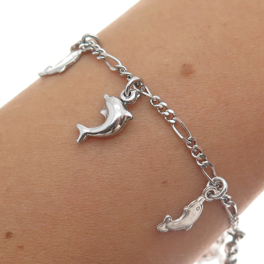 925 Sterling Silver Vintage Figaro Link Bracelet 8"