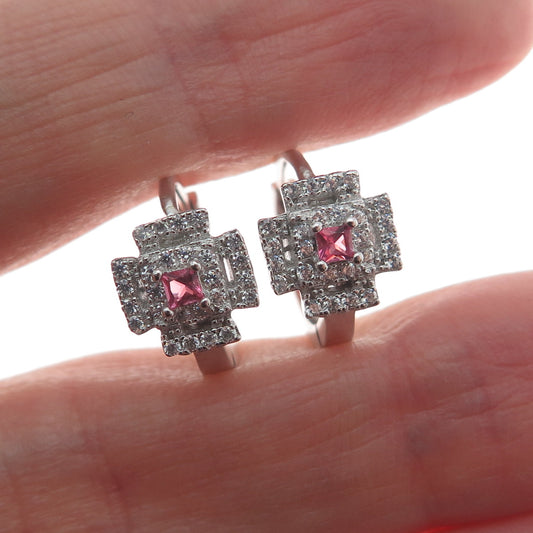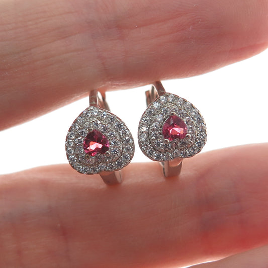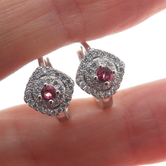 925 Sterling Silver Round-Cut C Z Hoop Earrings