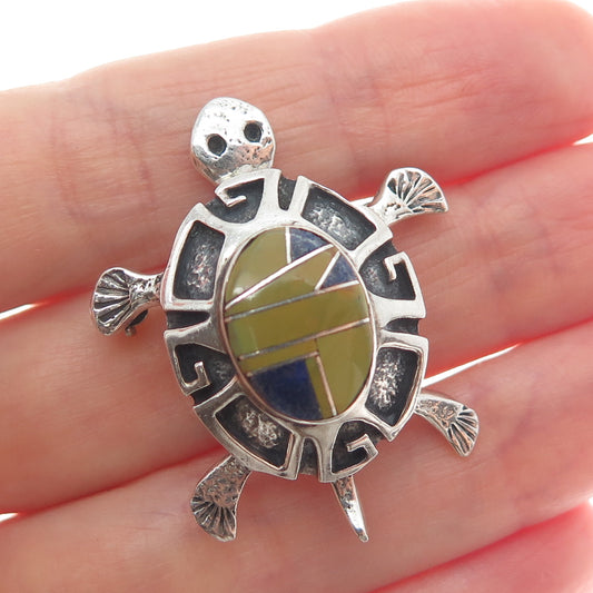 925 Sterling Silver Vintage Real Turquoise Lapis Coral Inlay Sun Face Pendant