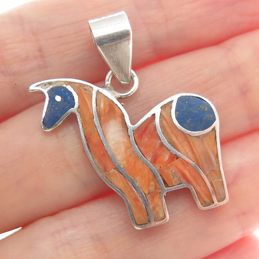 925 Sterling Silver Vintage Real Lapis Turquoise Coral & Jasper Charm Pendant