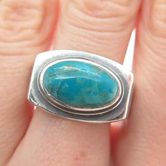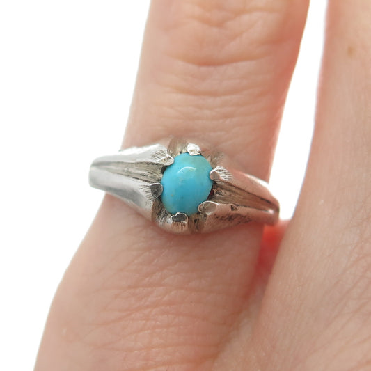Old Pawn Sterling Silver Vintage Royston Turquoise Feather Tribal Ring Size 6.5