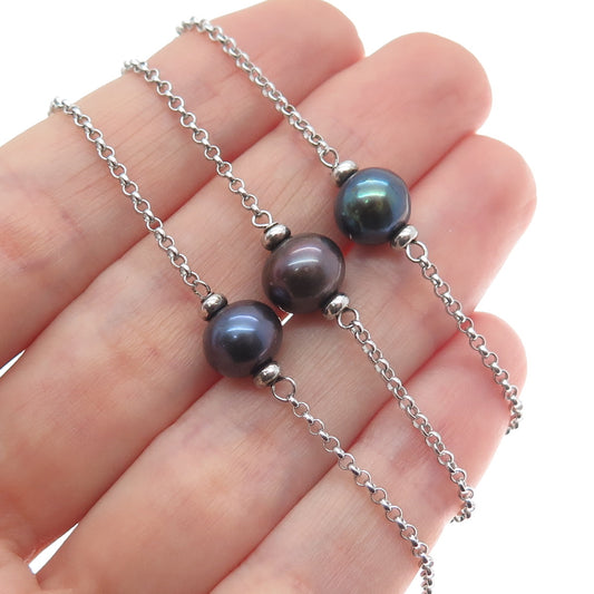925 Sterling Silver Real Pearl & Green Amethyst By The Yard Chain Necklace 24"
