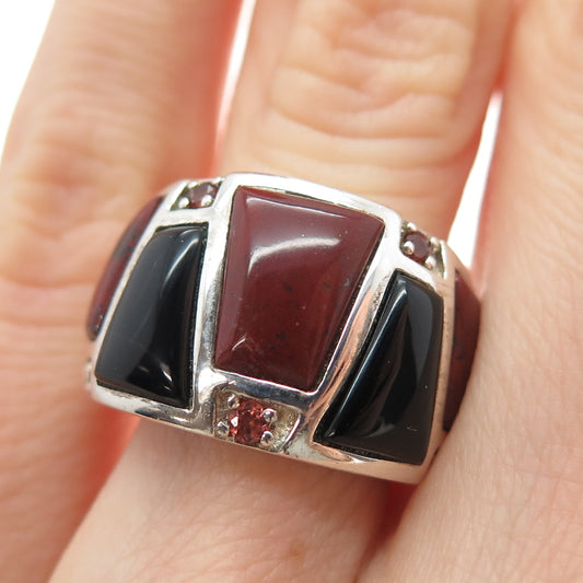 925 Sterling Silver Vintage Real Shungite Modernist Oxidized Ring Size 10.5