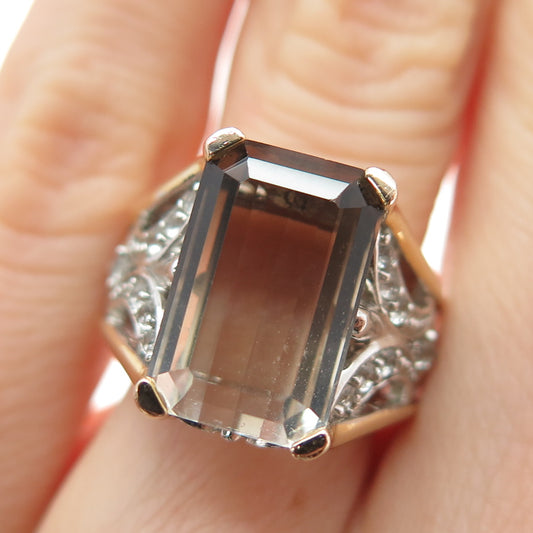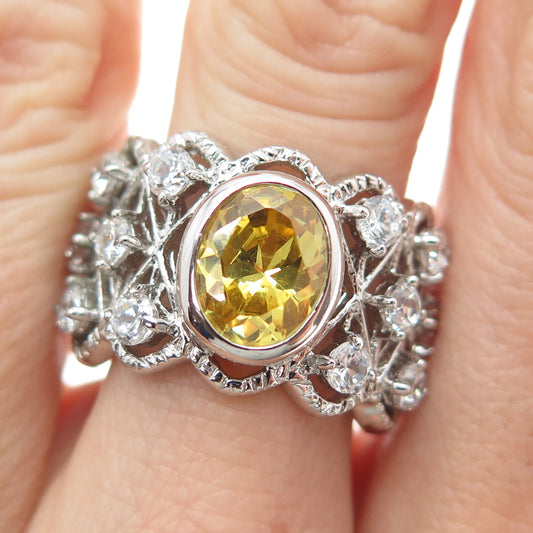 925 Sterling Silver Vintage Real Green Amethyst Modernist Oxidized Ring Size 9