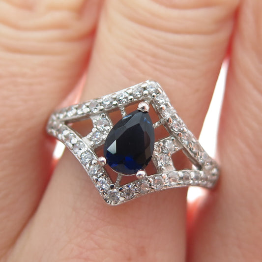 925 Sterling Silver Lab-Created Sapphire & C Z Crisscross Ring Size 6.25