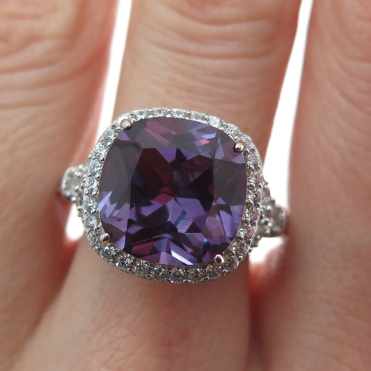 925 Sterling Silver Round-Cut Lab-Created Sapphire Ring Size 6.75