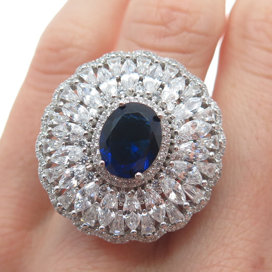 925 Sterling Silver Vintage Multi-Color C Z Statement Cluster Ring Size 7