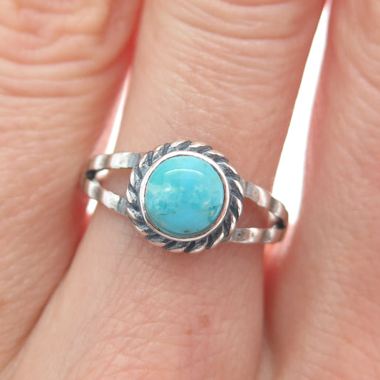 Old Pawn Sterling Silver Vintage Southwestern Morenci Turquoise Ring Size 7.25