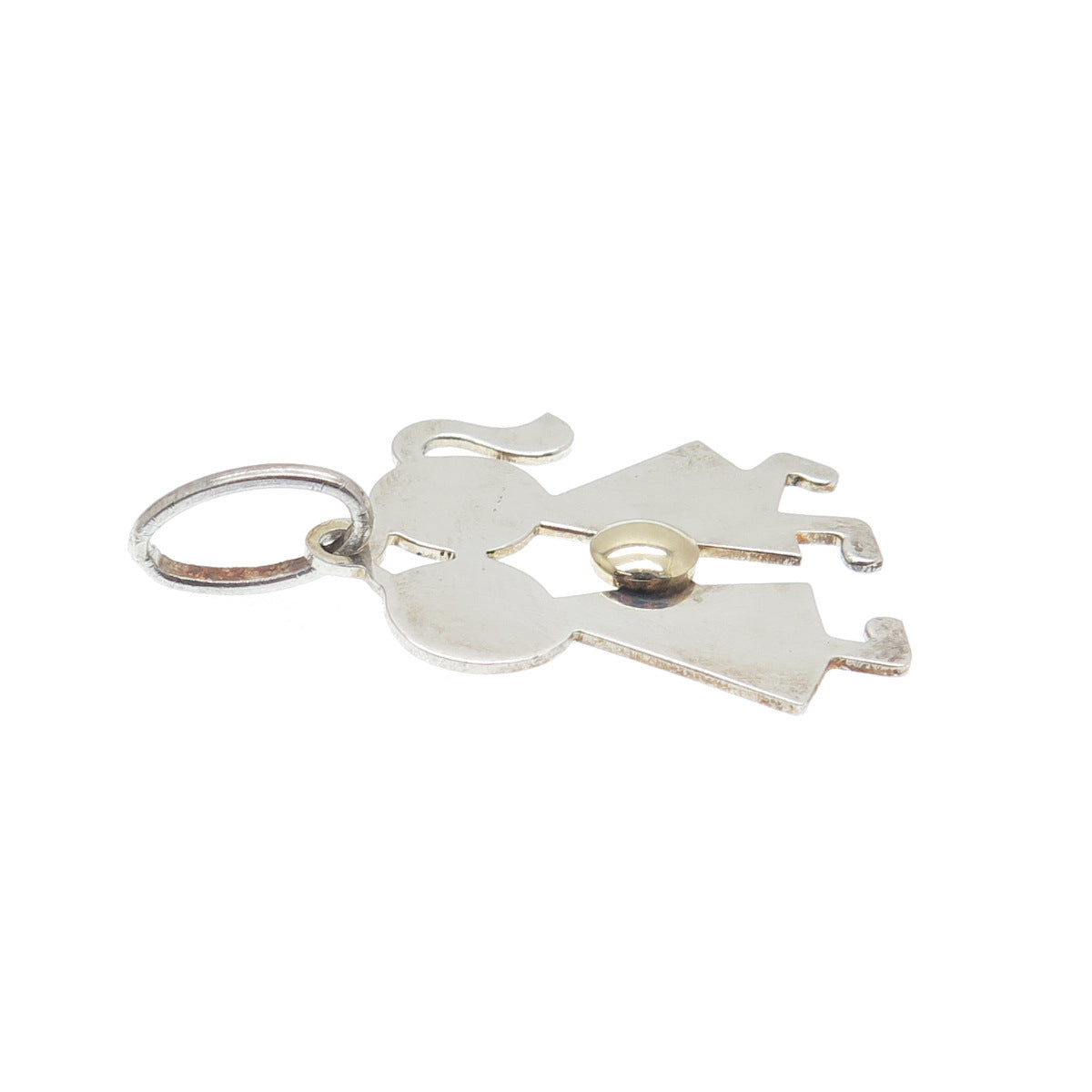 14K Gold & 925 Sterling Silver Vintage Italy Boy & Girl Kiss Charm Pendant