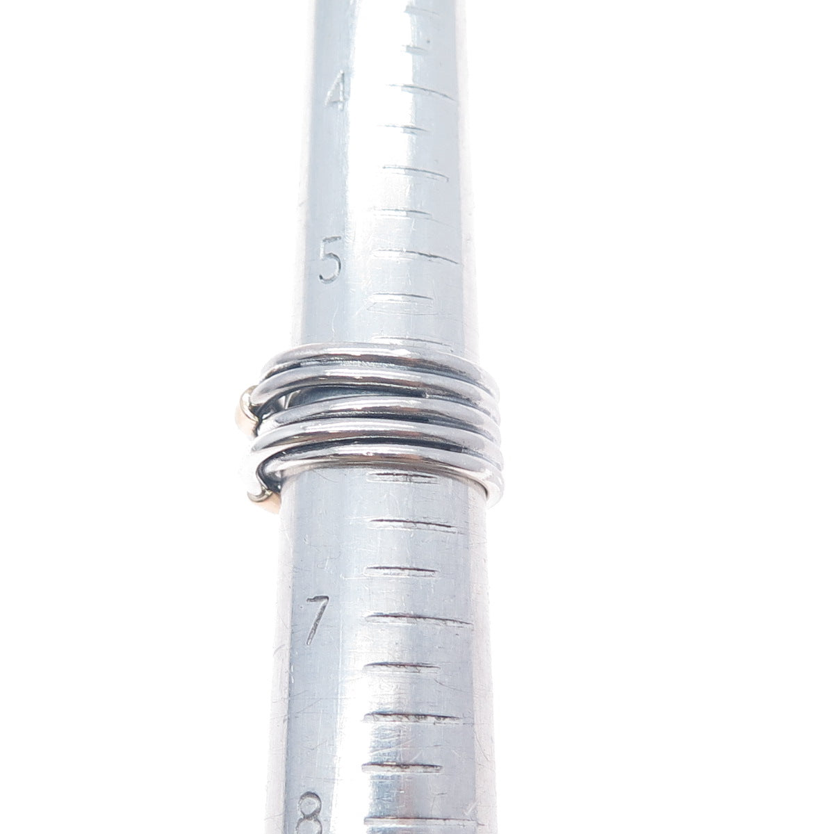 14K Gold 925 Sterling Silver Vintage Modernist Crisscross Ring Size 6.25