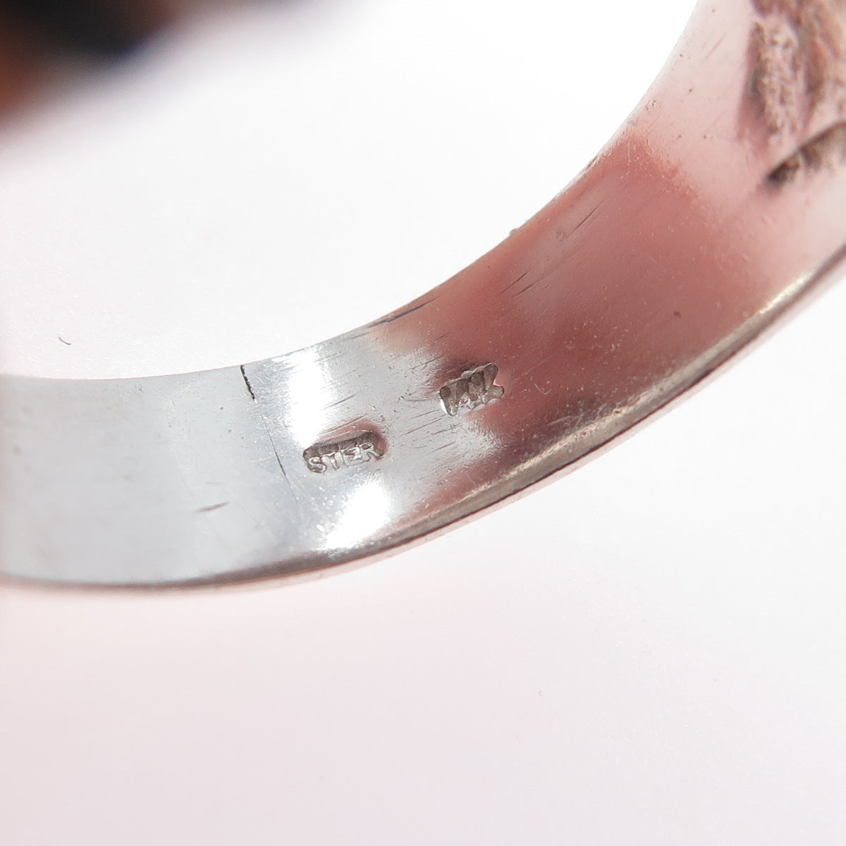 14K Gold 925 Sterling Silver Vintage Modernist Ribbed Oxidized Ring Size 11.75