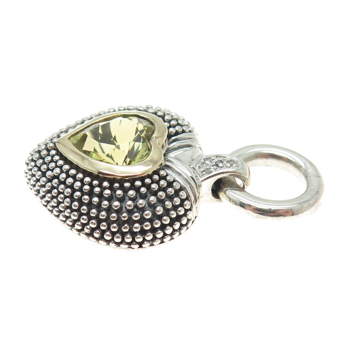 14K Gold & 925 Sterling Silver Vintage Real Diamond & Peridot Heart Pendant