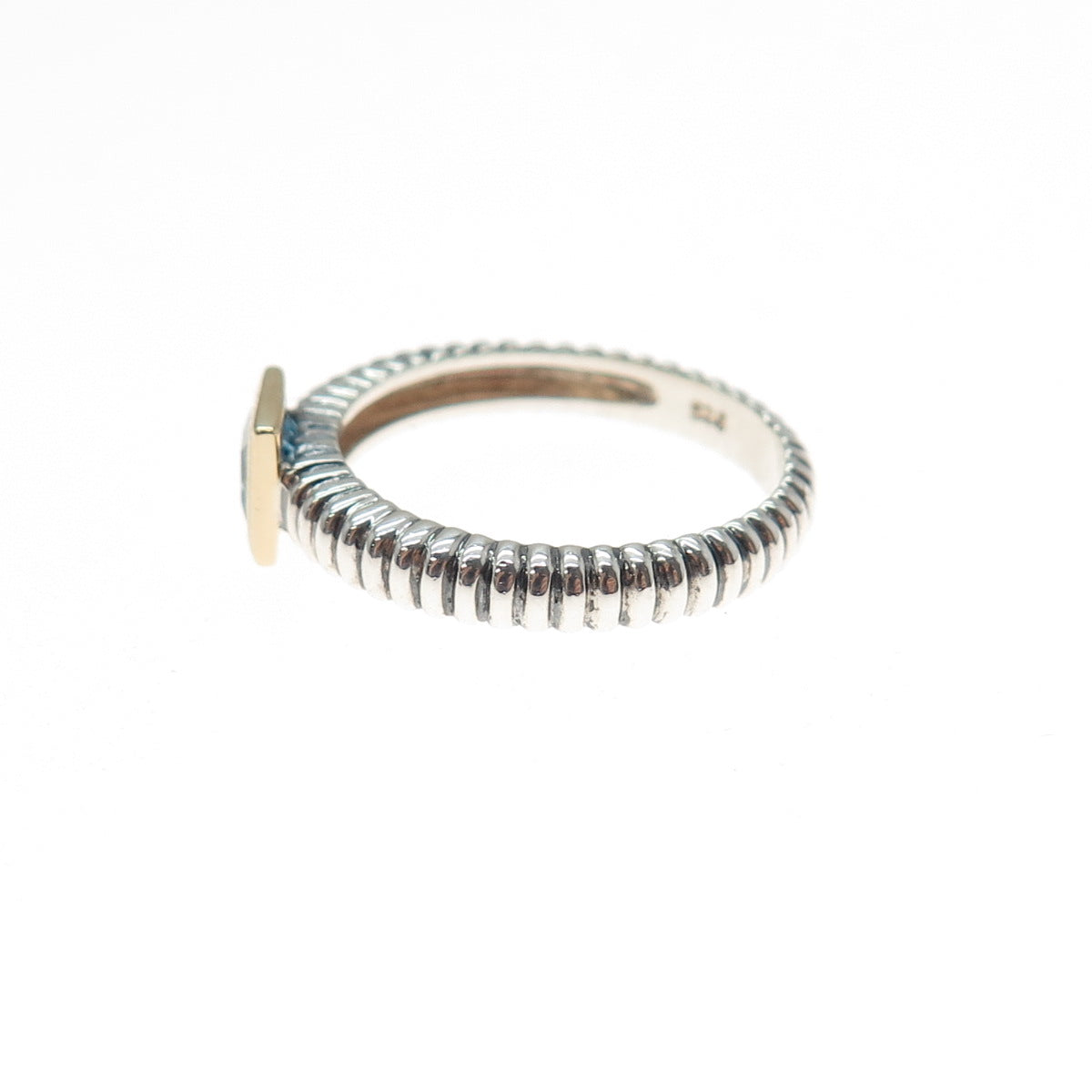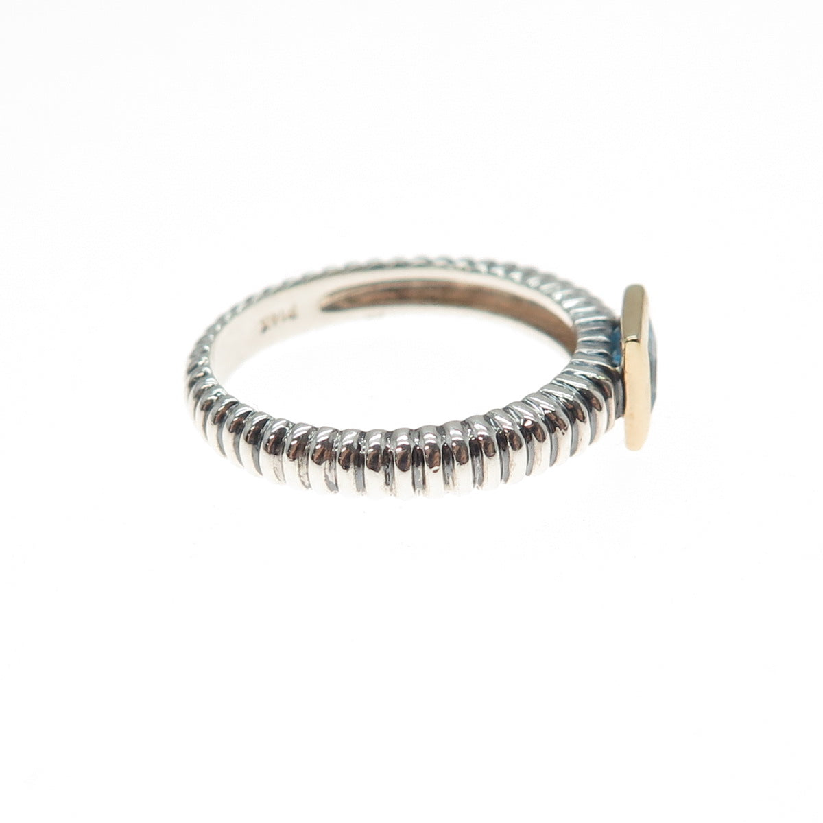 14K Gold 925 Sterling Silver Vintage Real Princess-Cut Blue Topaz Ring Size 5.75