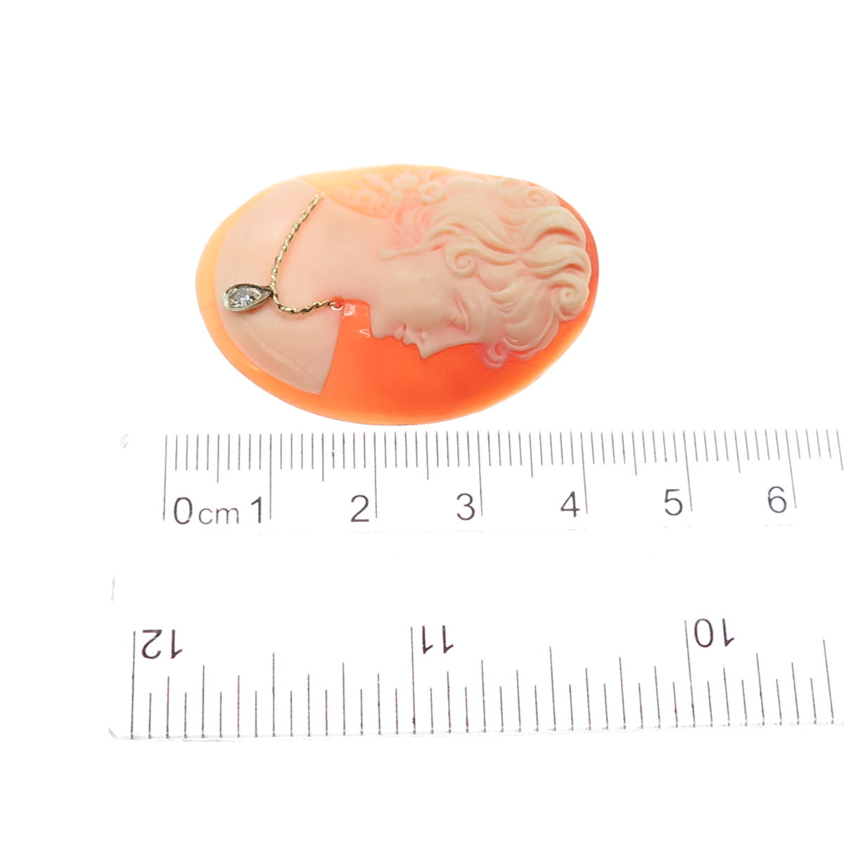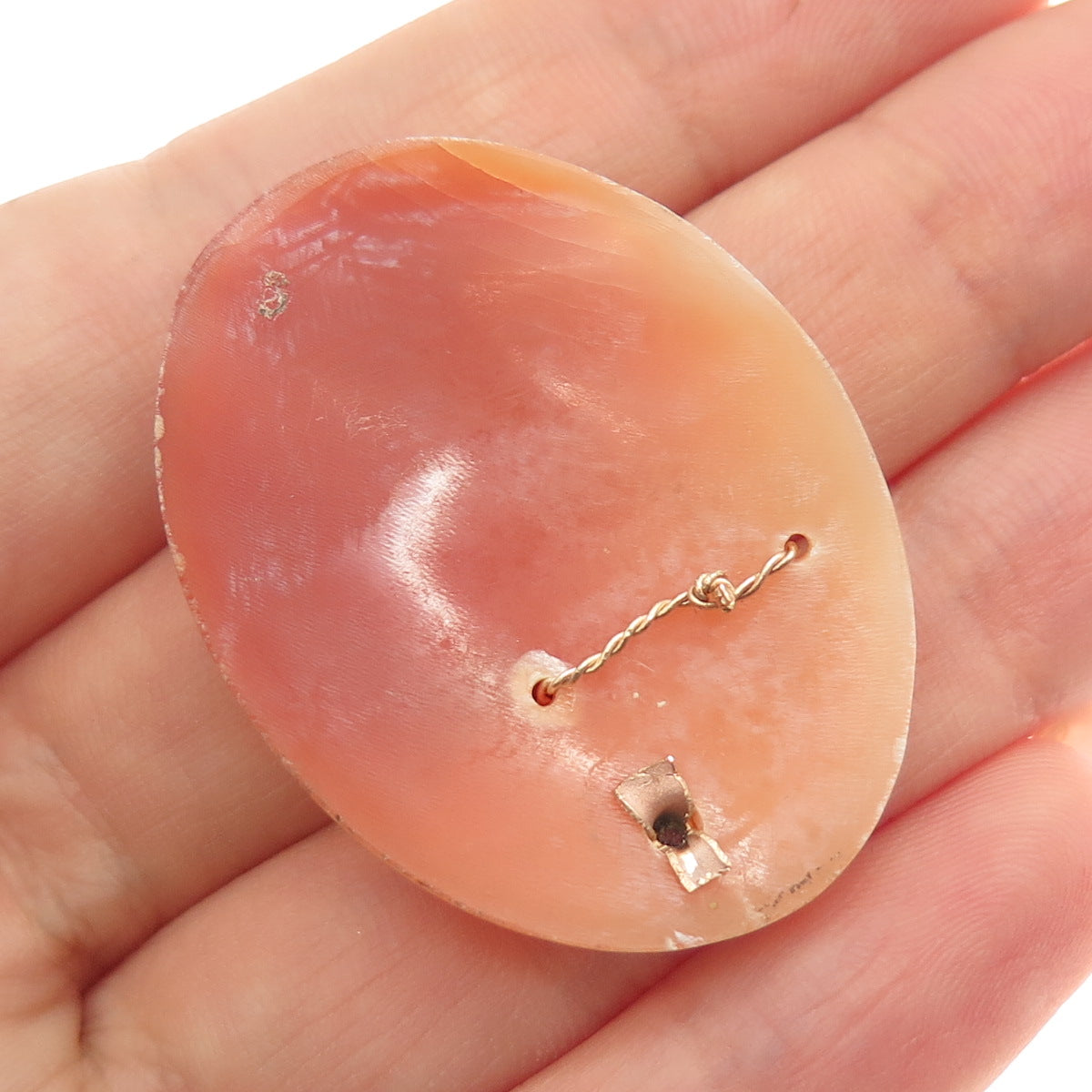 14K Gold Antique Real Round-Cut Diamond & MOP Victorian Lady Cameo