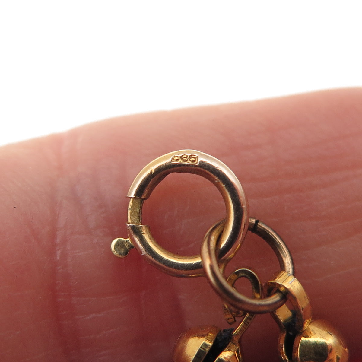 14K Gold Vintage Real Lapis Lazuli Ball Beaded Chain Necklace 24"