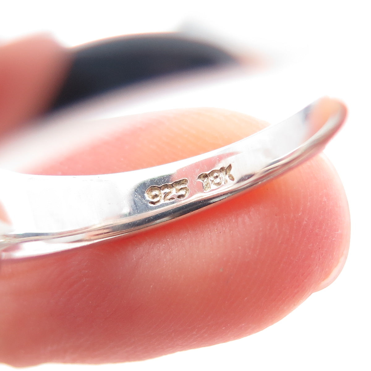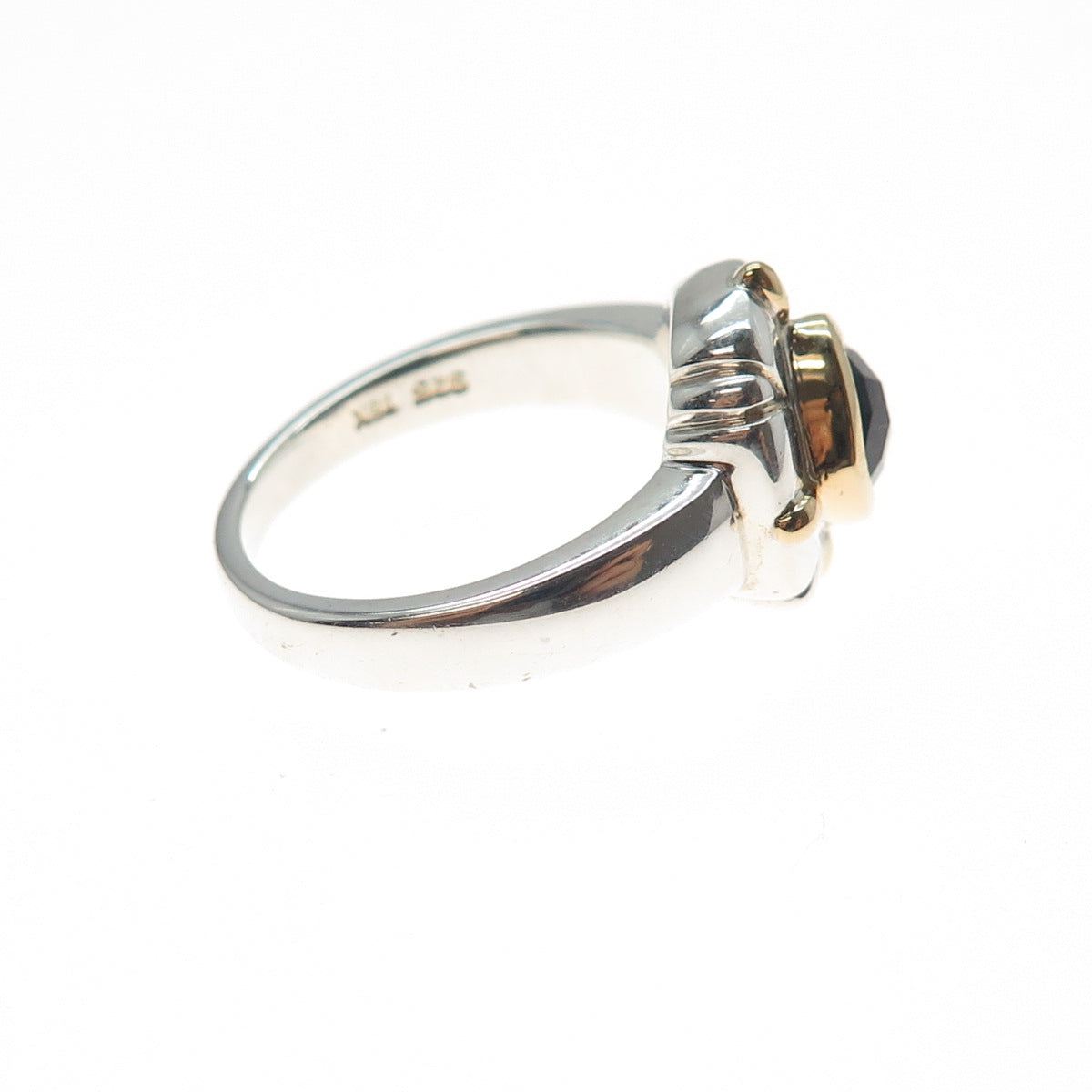 18K Gold 925 Sterling Silver Vintage Real Amethyst Modernist Ring Size 7.25