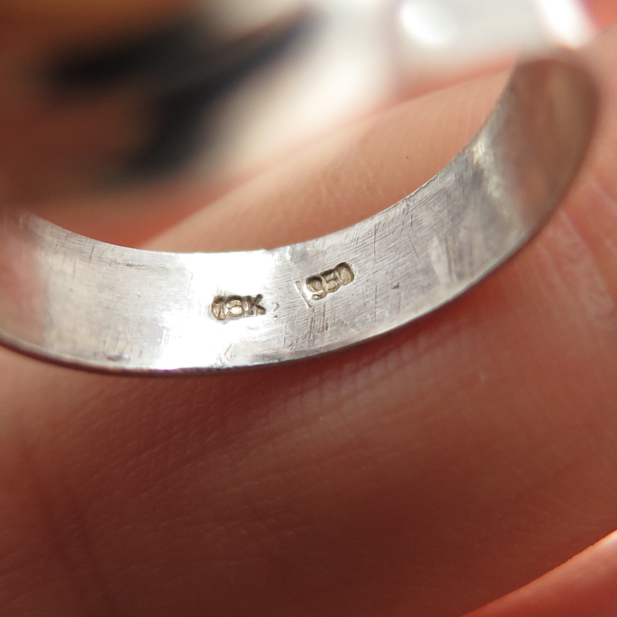 18K Gold & 950 Silver Vintage Real Mother-of-Pearl Modernist Ring Size 7.25