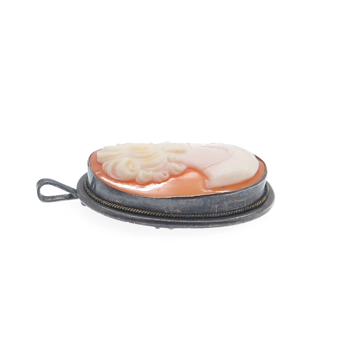 800 Silver 2-Tone Antique Cameo Victorian Lady Oxidized Pendant