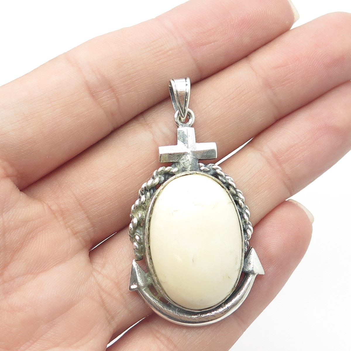 800 Silver Antique Art Deco France Navy Anchor Roped Pendant