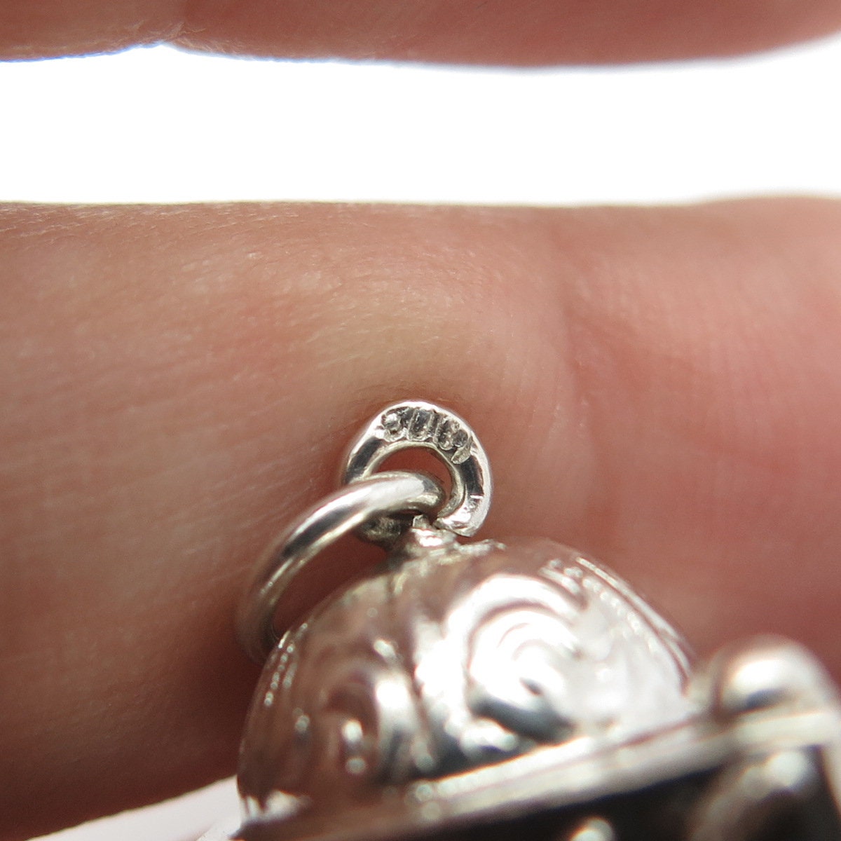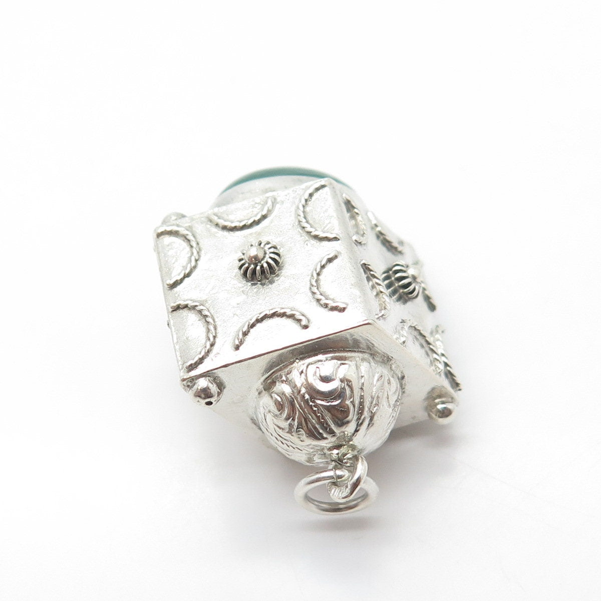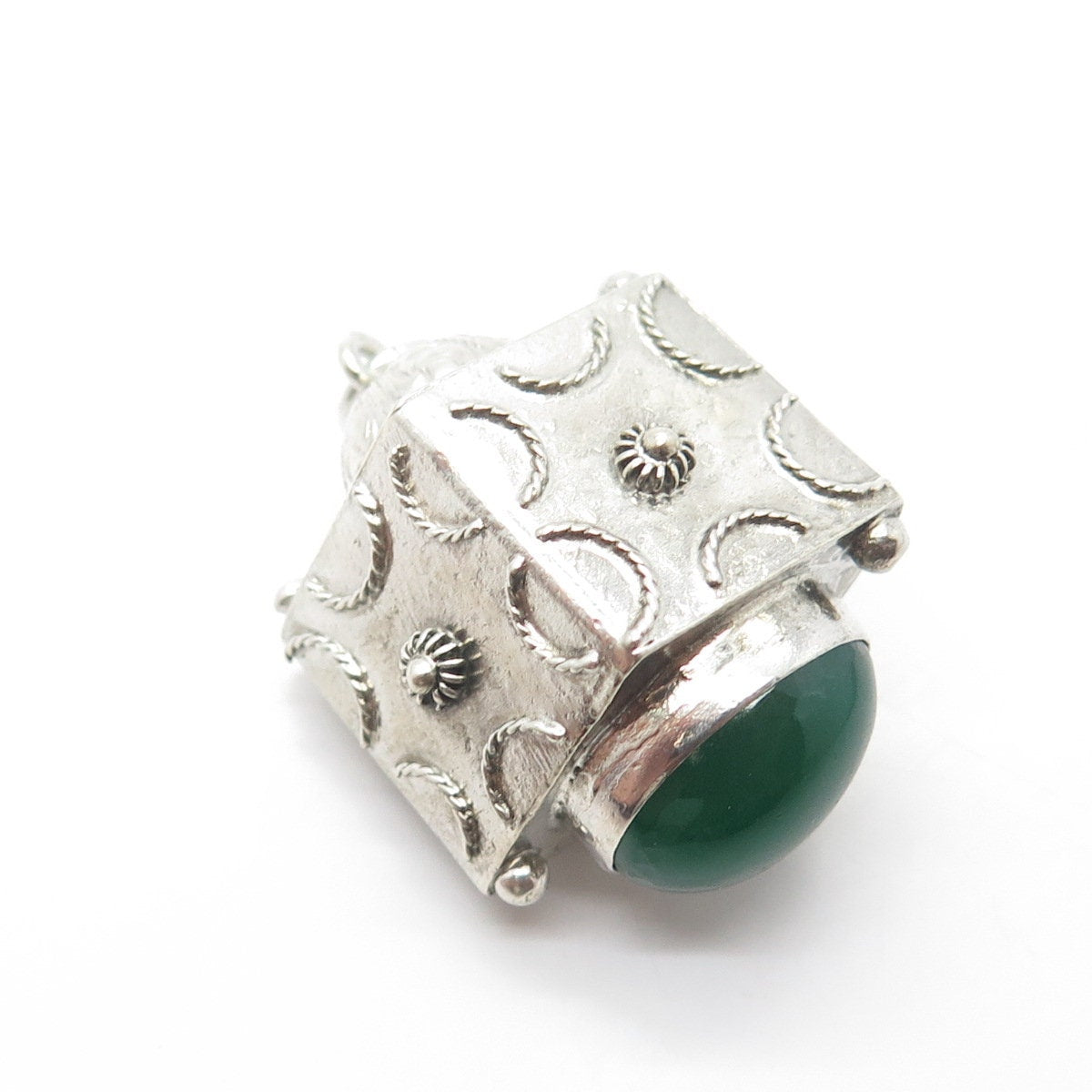 800 Silver Antique Art Deco Real Green Agate Gemstone Chatelaine Fob Pendant
