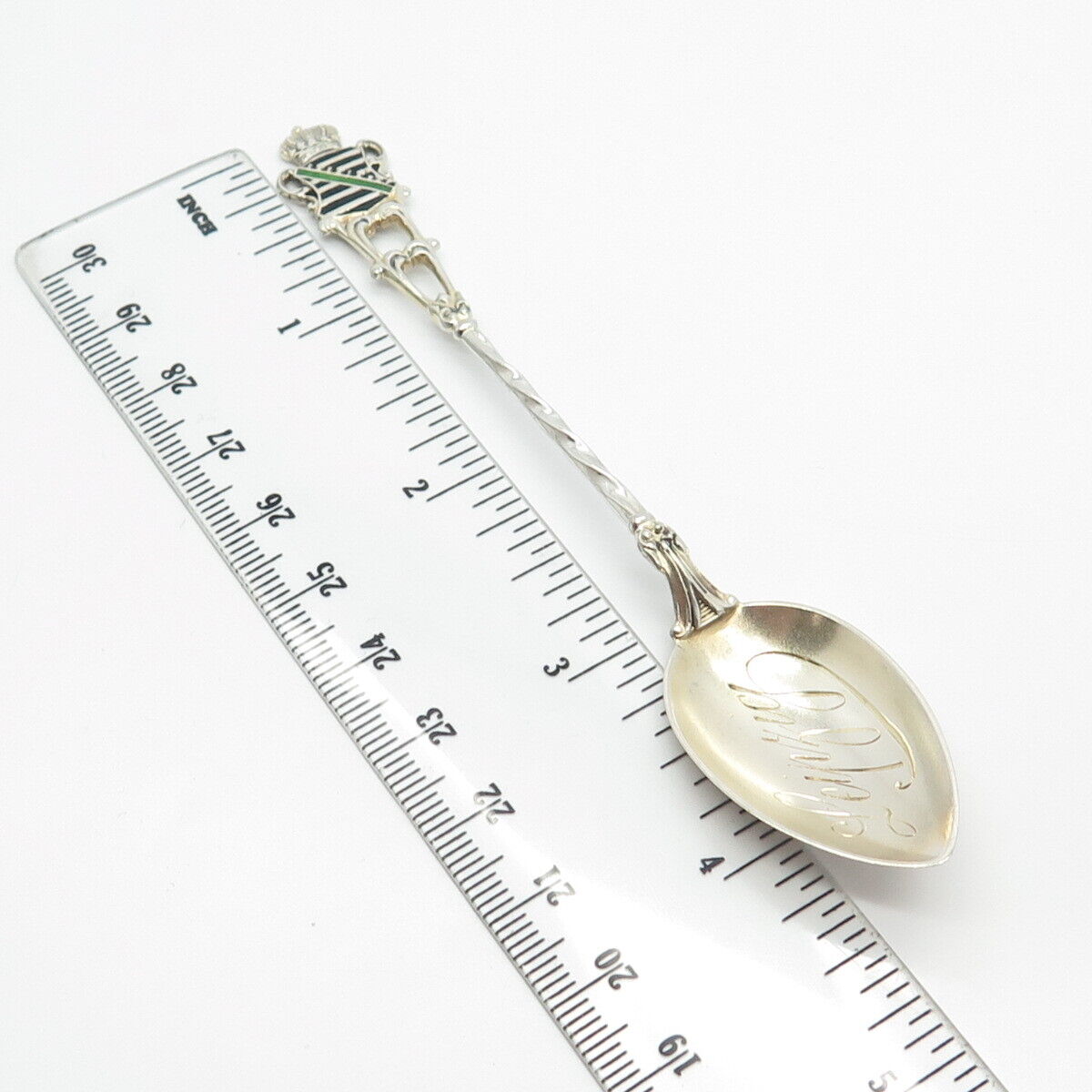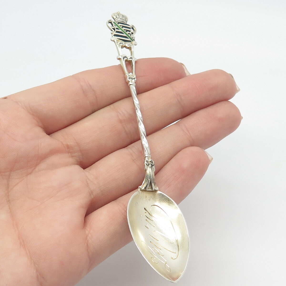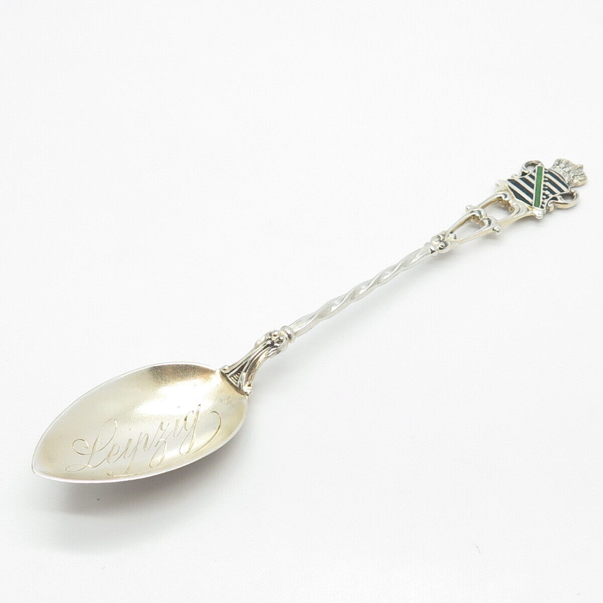 800 Silver Antique Colorful Enamel "Leipzig" Coat of Arms Spoon