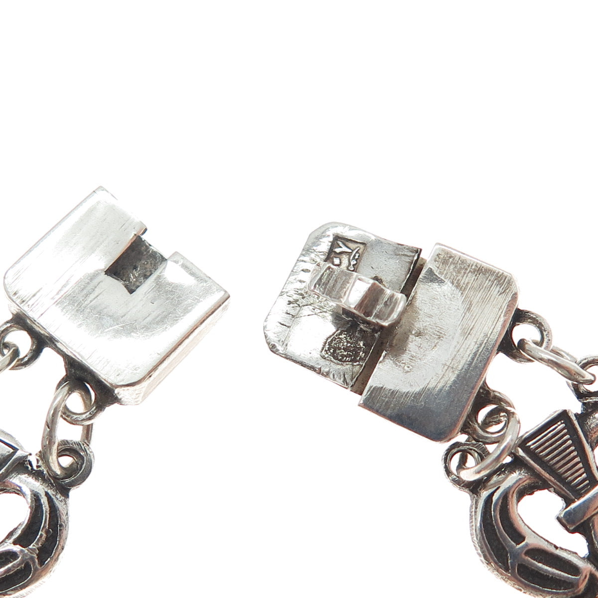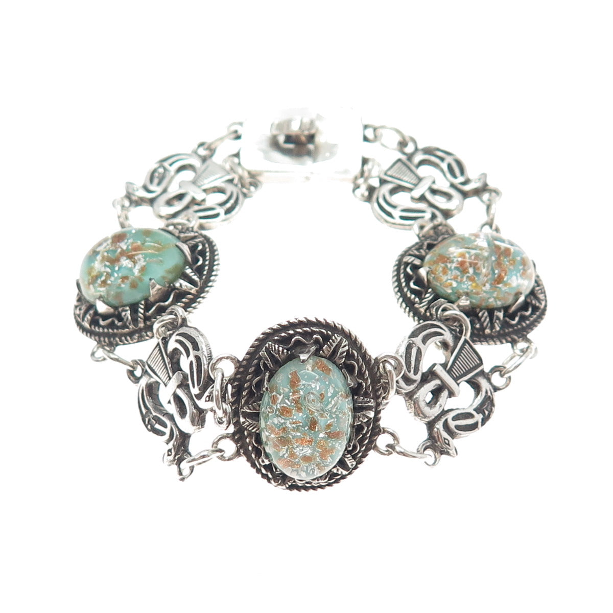 800 Silver Antique Egypt Roman Glass Ankh Link Oxidized Bracelet 6.25"