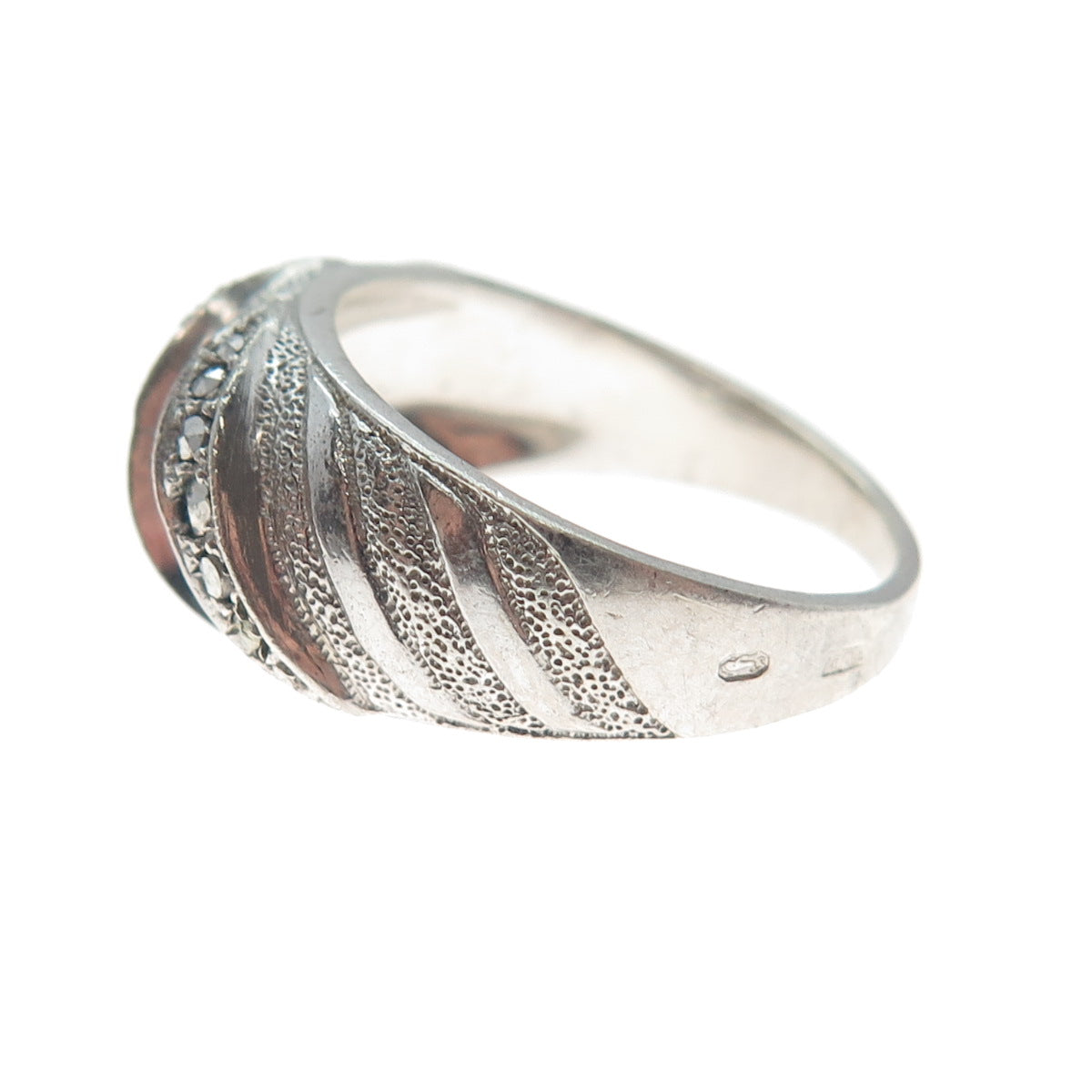 800 Silver Antique FOE France Real Marcasite Gemstone Braided Ring Size 7.75