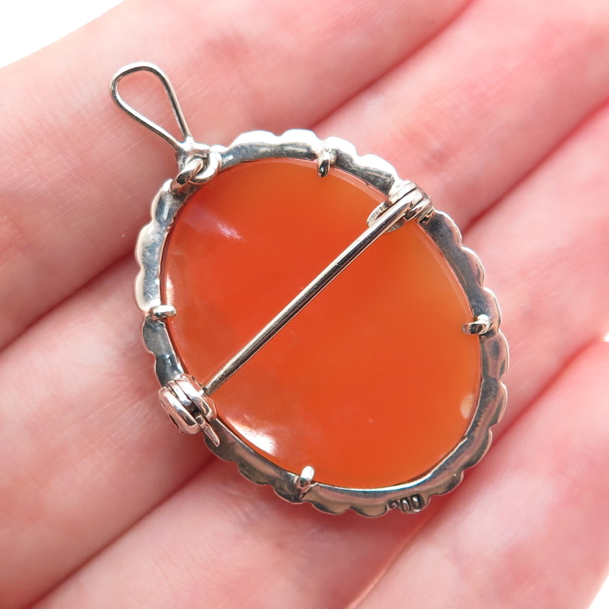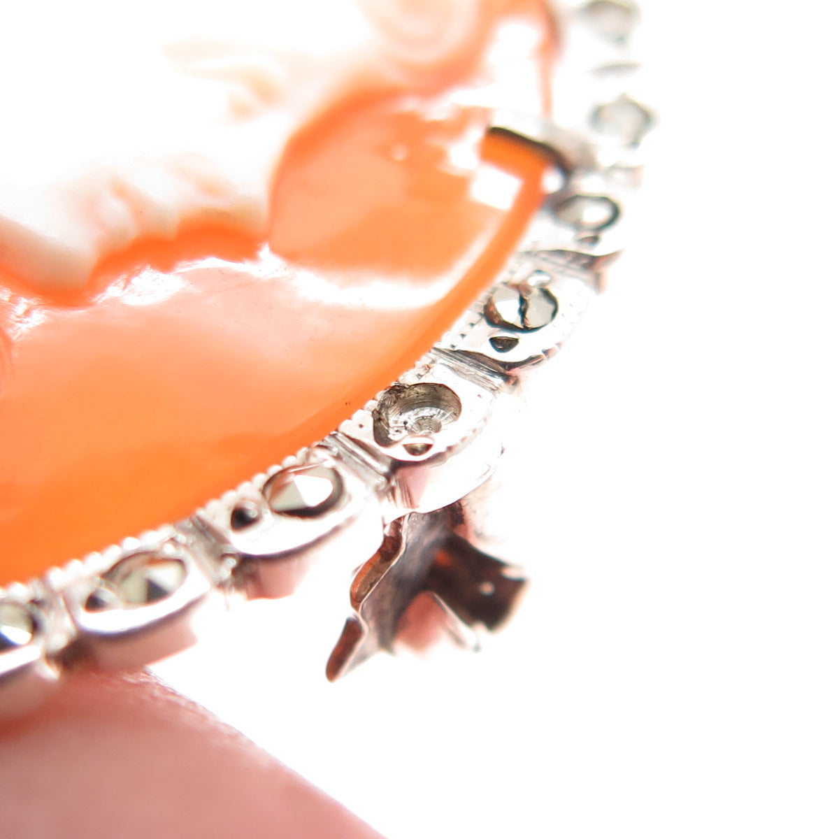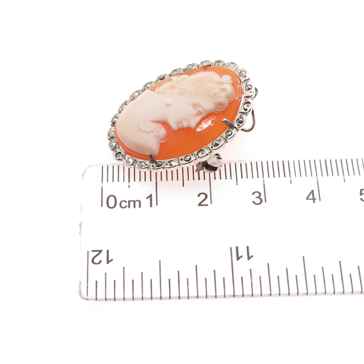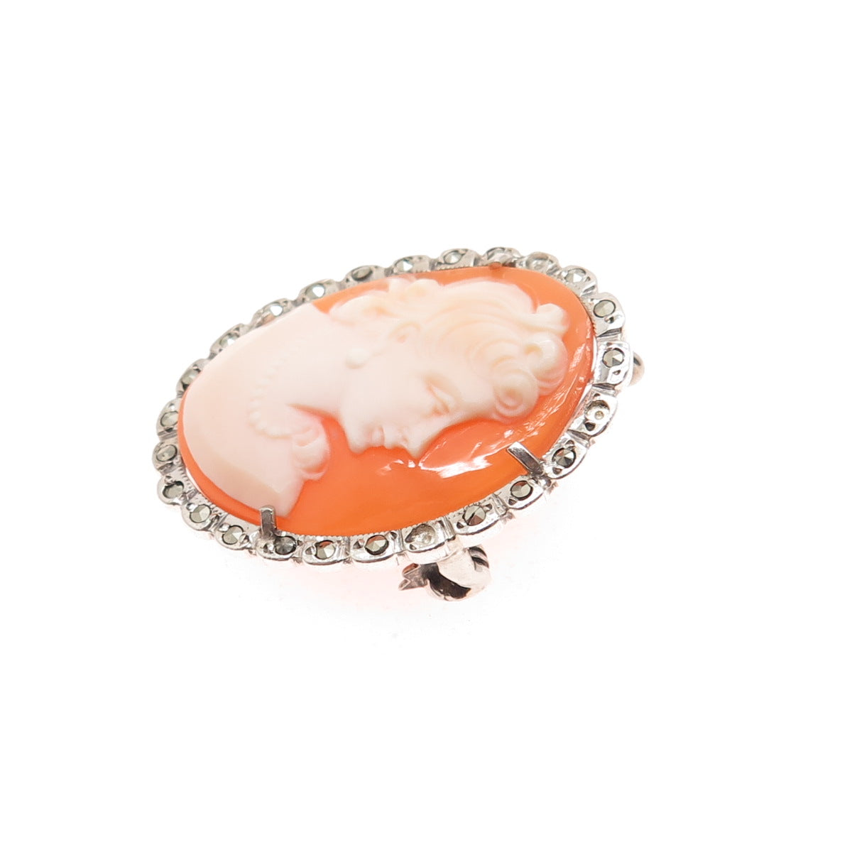 800 Silver Antique MOP & Marcasite Lady Cameo Brooch / Pendant (missing 2 stone)