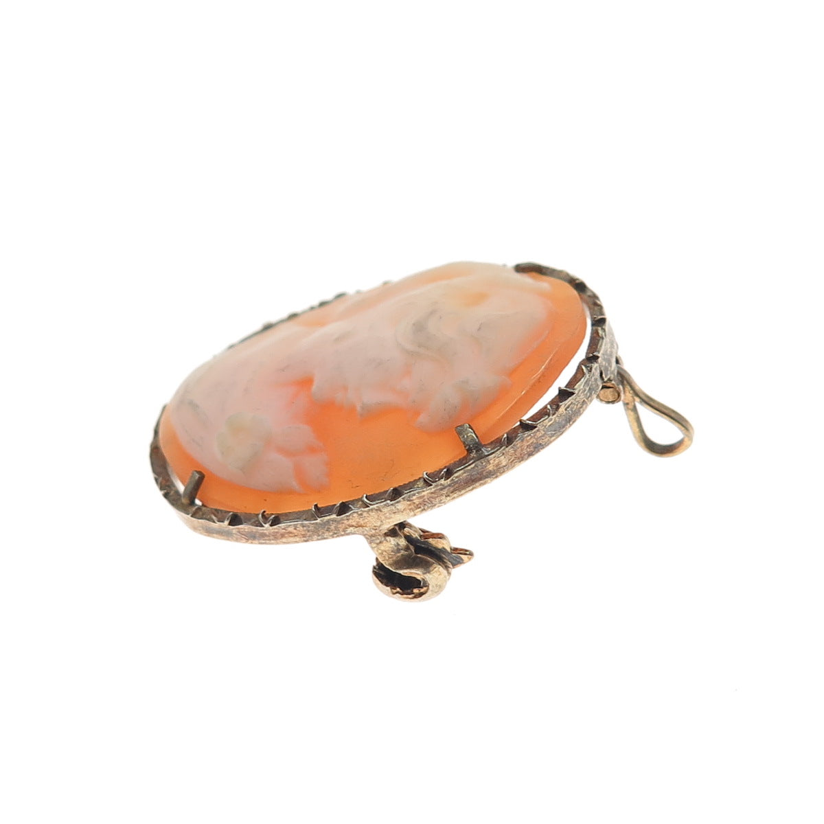 800 Silver Gold Filled Antique European Real MOP Lady Cameo Pin Brooch / Pendant