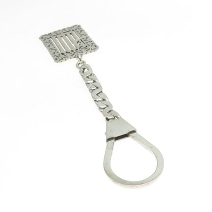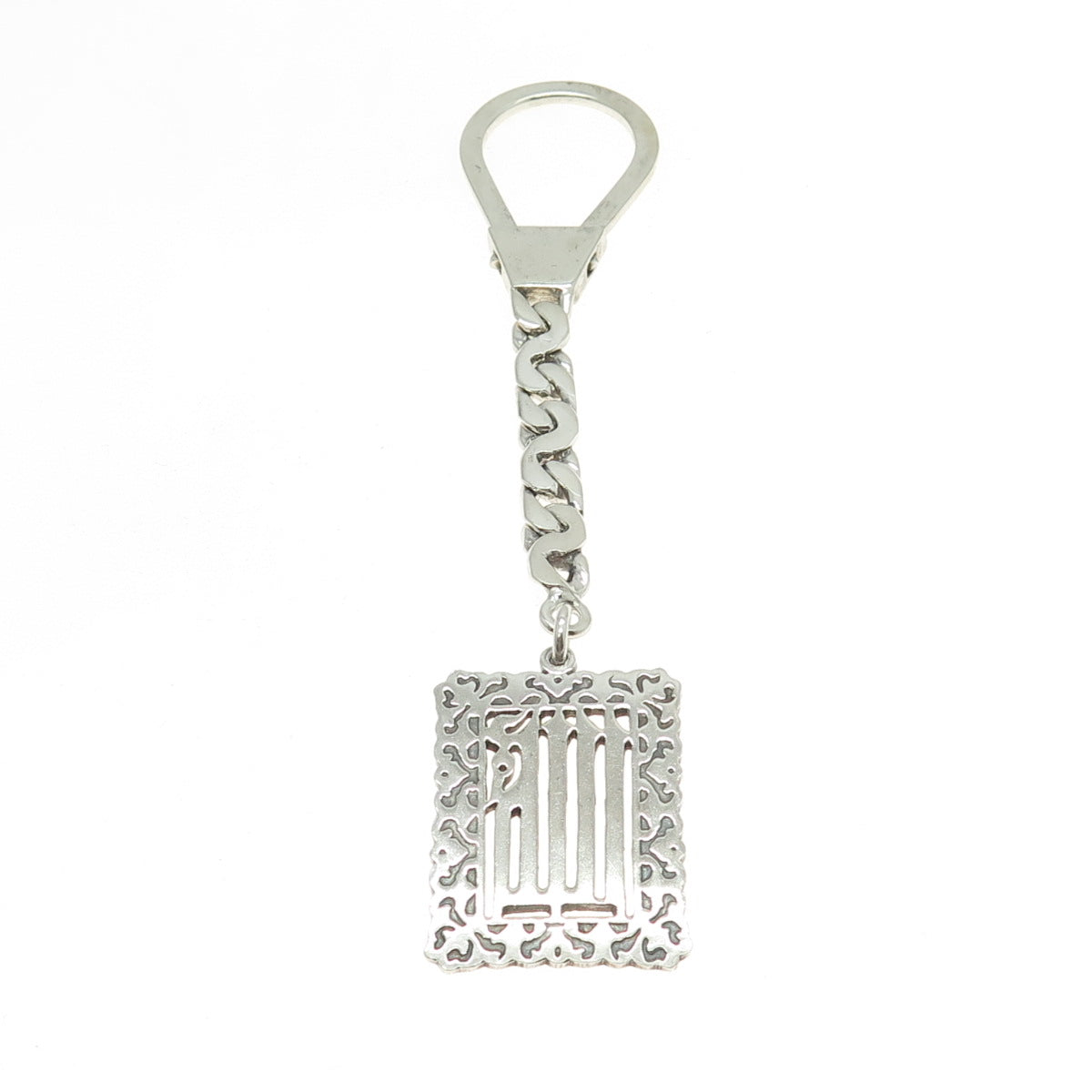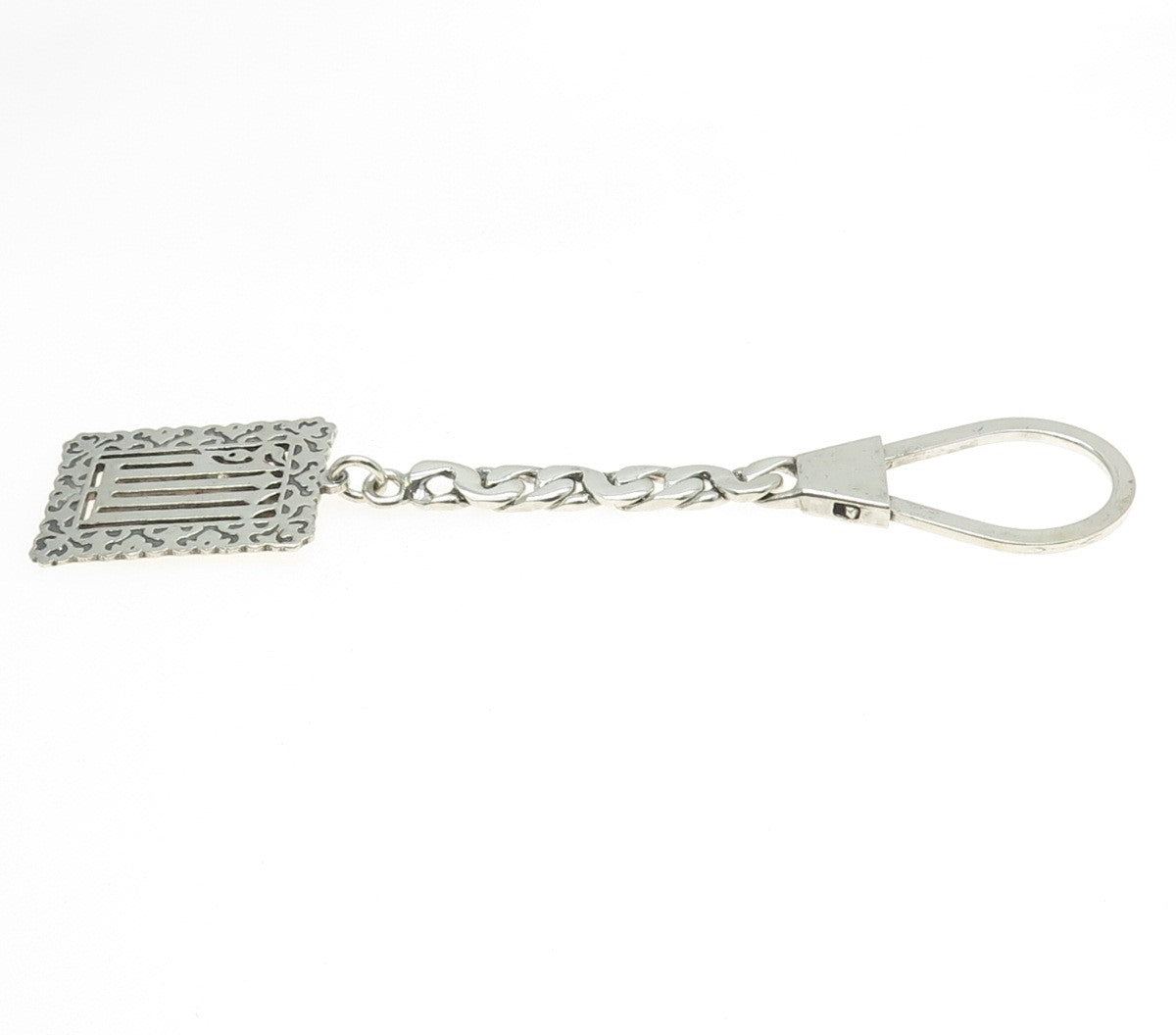 800 Silver Vintage Egypt Floral Key Chain Fob Holder