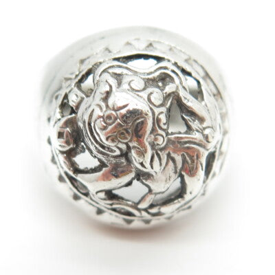 800 Silver Vintage France Chinese Foo Dog Dome Ring Size 10