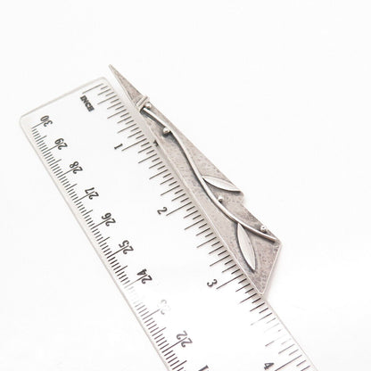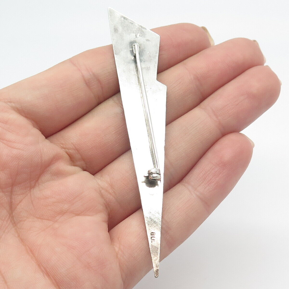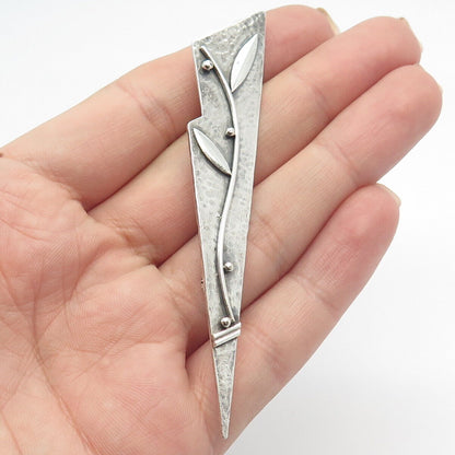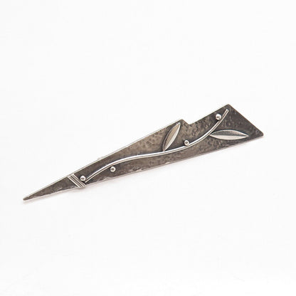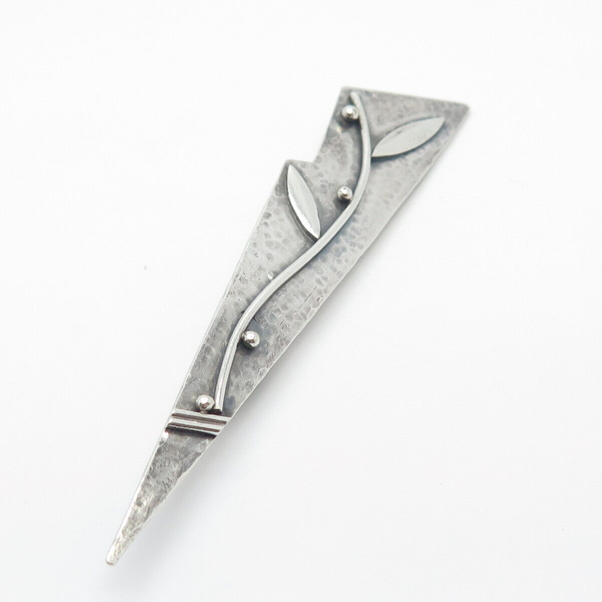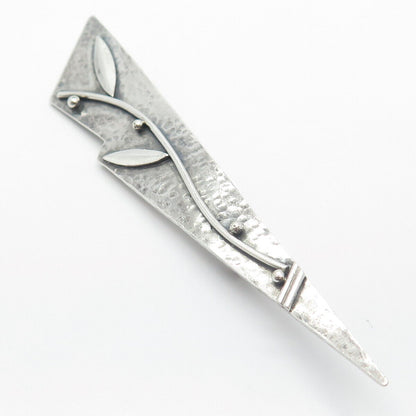 800 Silver Vintage Hammered Leaf Modernist Pin Brooch