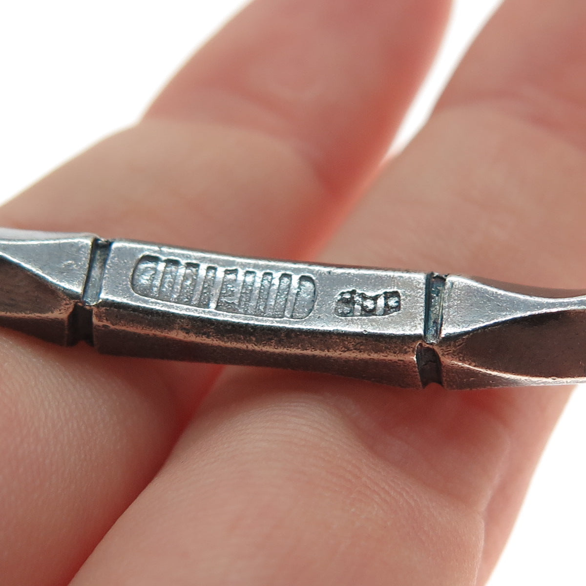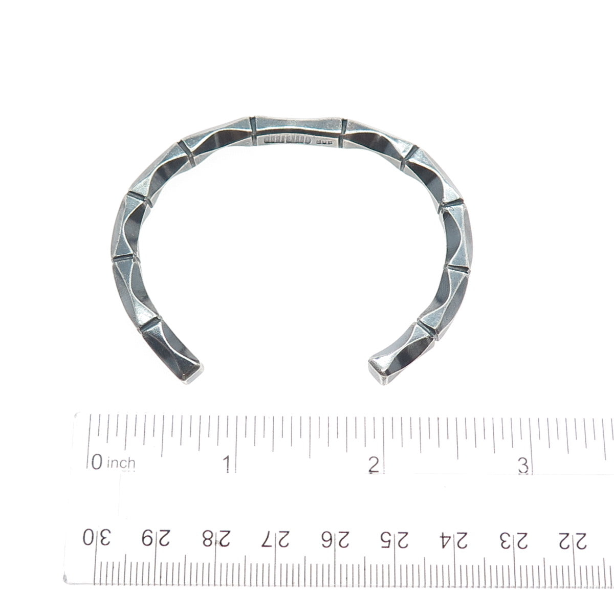 800 Silver Vintage Modernist Bamboo Oxidized Adjustable Cuff Bracelet 6.5"