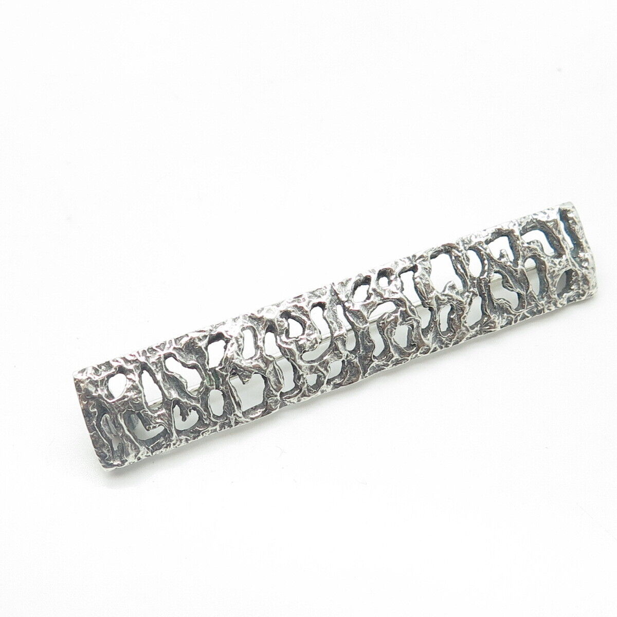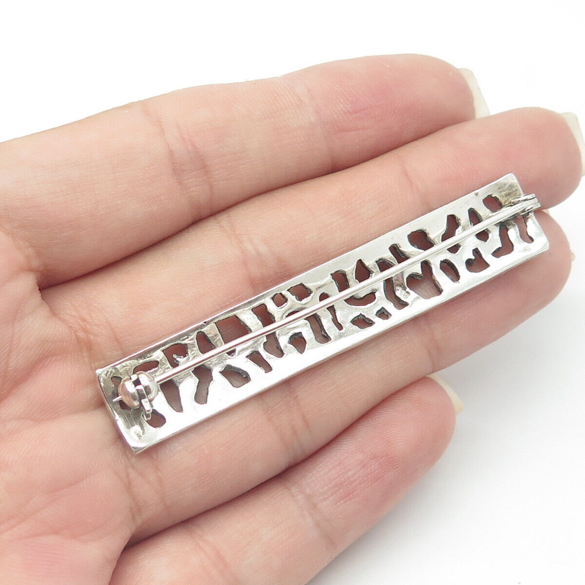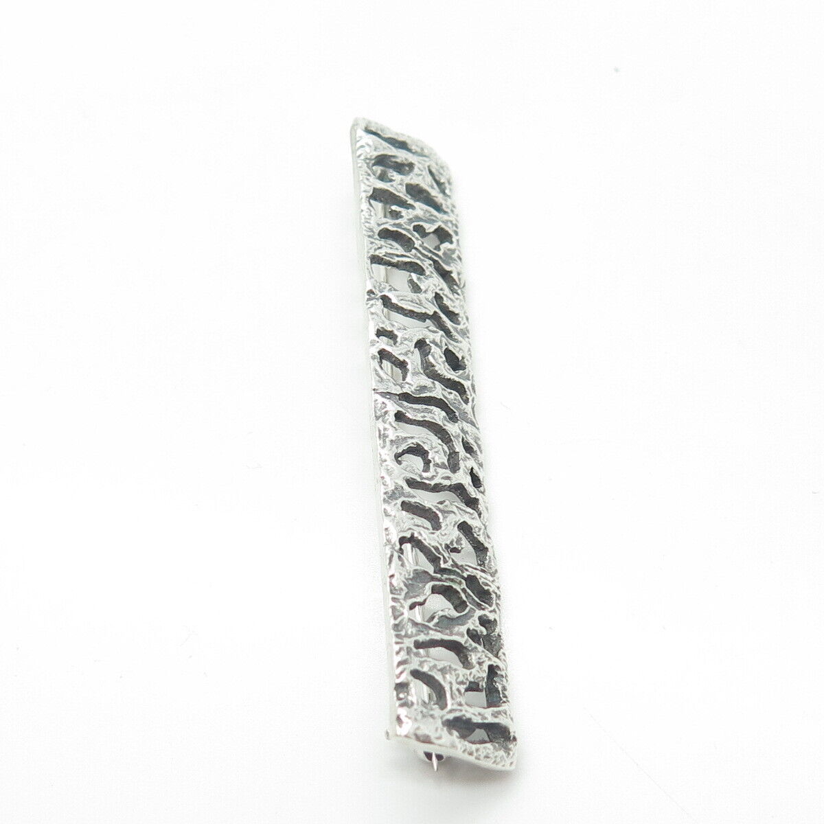 835 Silver Vintage Vague Oxidized Perforated Rectangle Pin Brooch