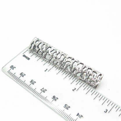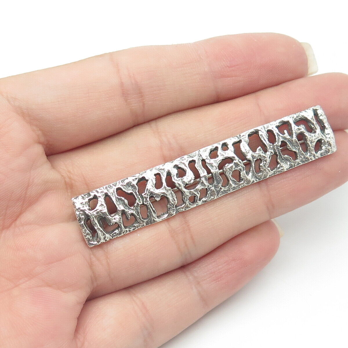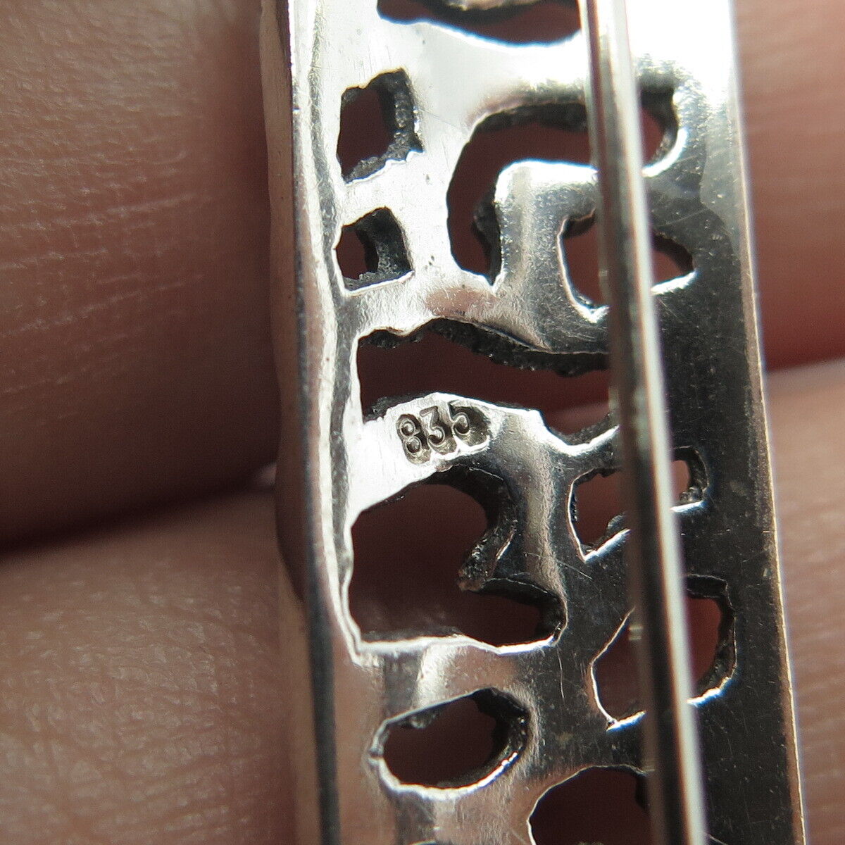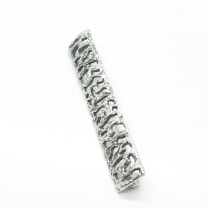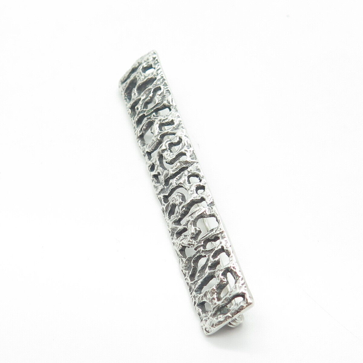 835 Silver Vintage Vague Oxidized Perforated Rectangle Pin Brooch