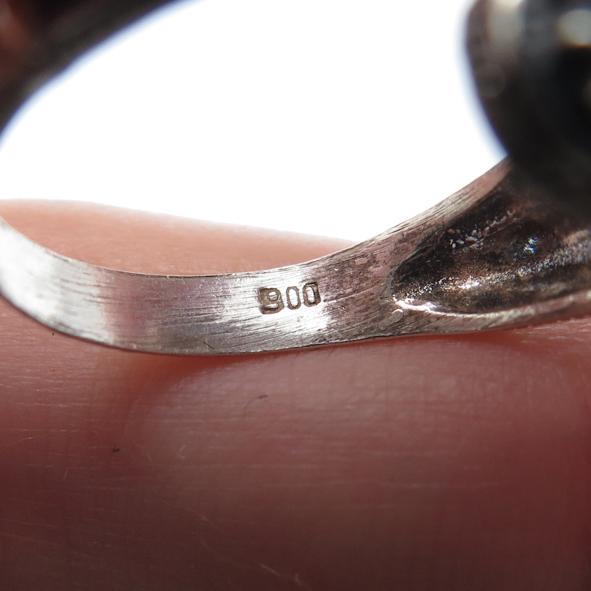 900 Silver Vintage Enamel Filigree Bypass Oxidized Ring Size 6.75