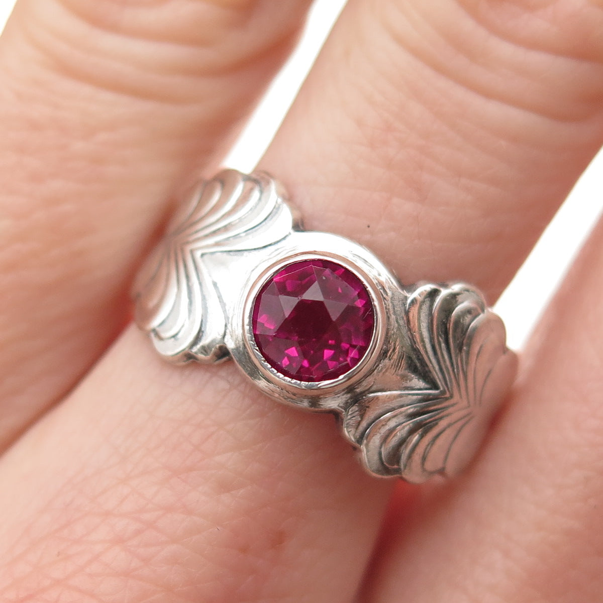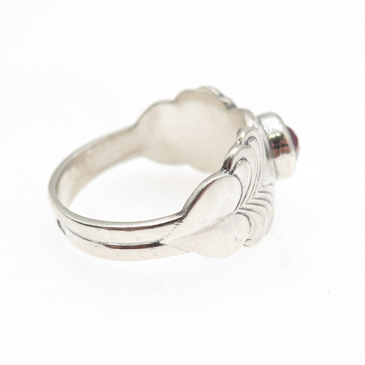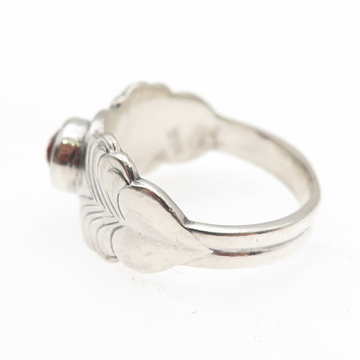 916 Silver Vintage European Lab-Created Ruby Modernist Heart Ring Size 8.25
