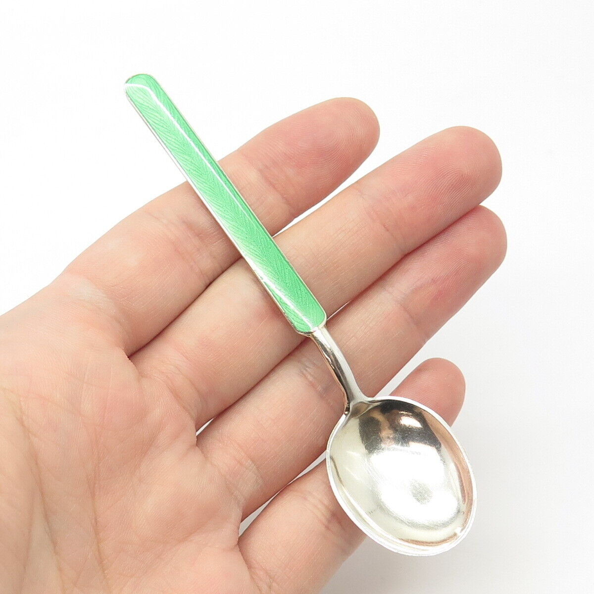 916H Silver Vintage 1950 Koruteollisuus Tillander Finland Guilloche Enamel Spoon