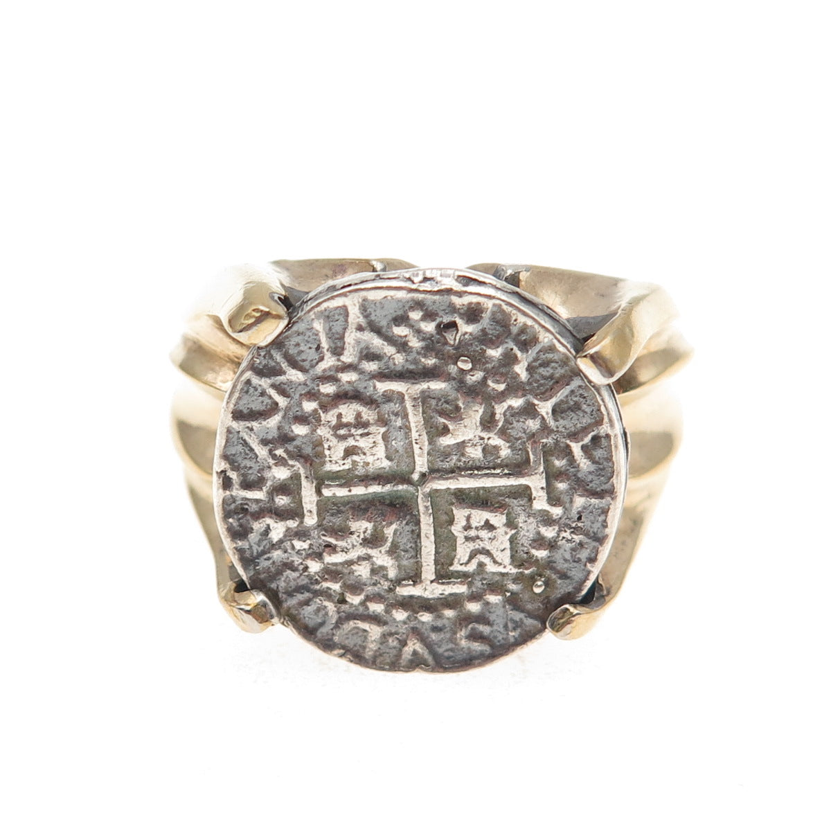 925 Sterling 14K Gold Filled Vintage Atocha Shipwreck Spanish Ring Size 10.75