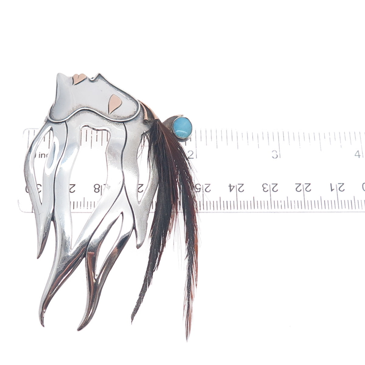 925 Sterling 14K Gold Vintage Real Opal Feather Fairy Centerpiece Slide Pendant