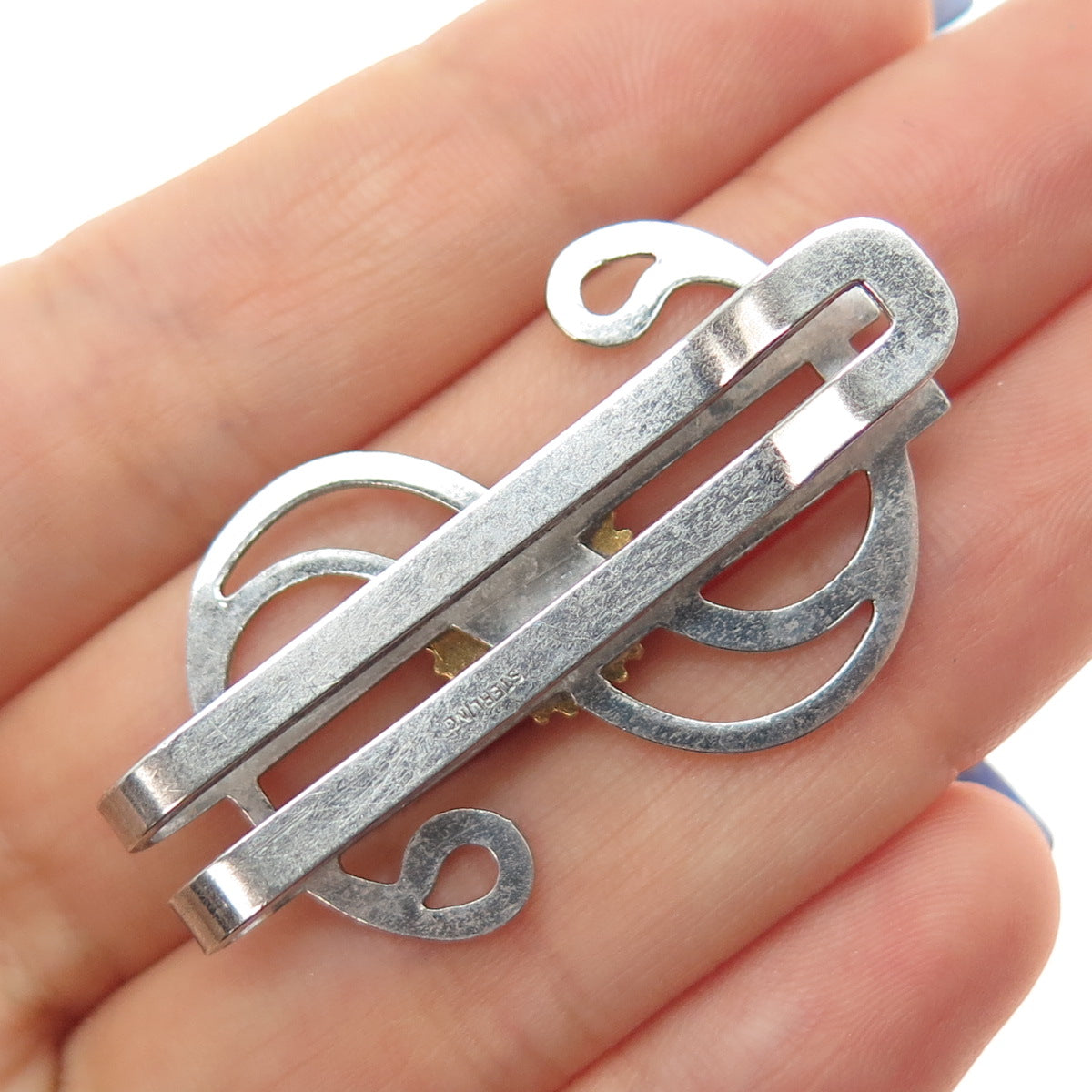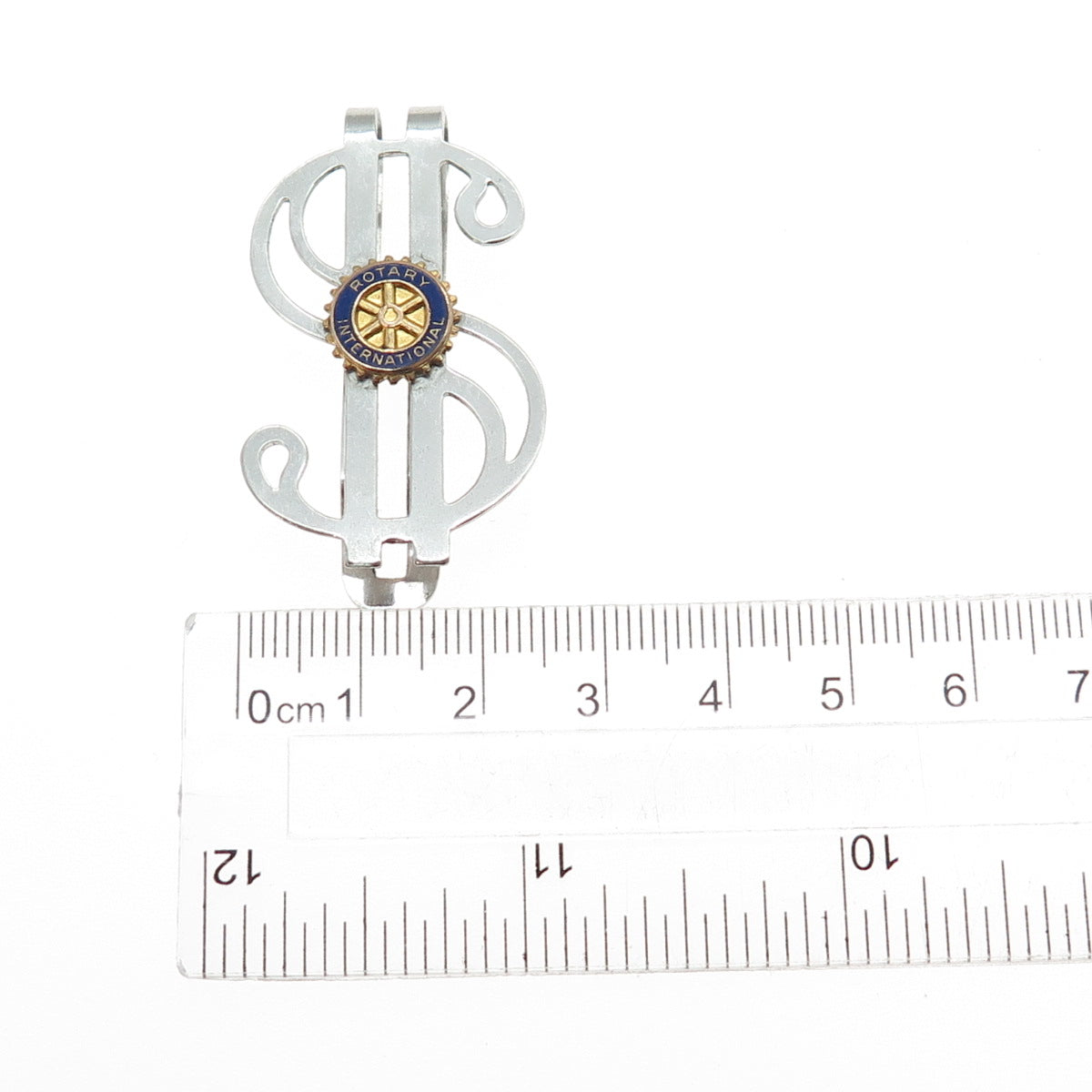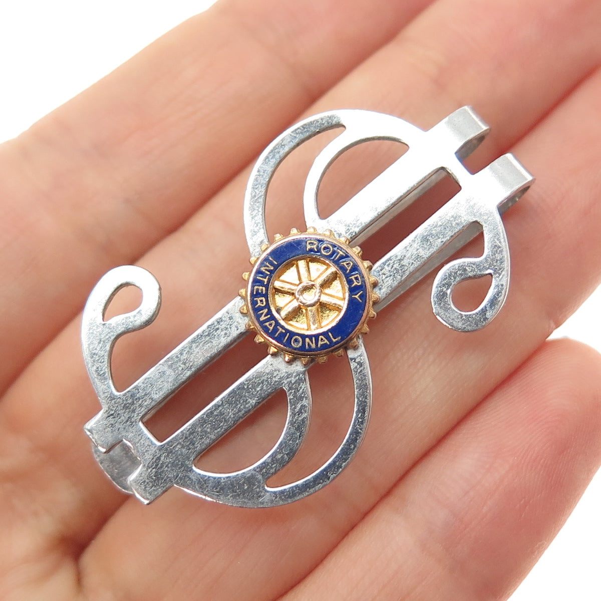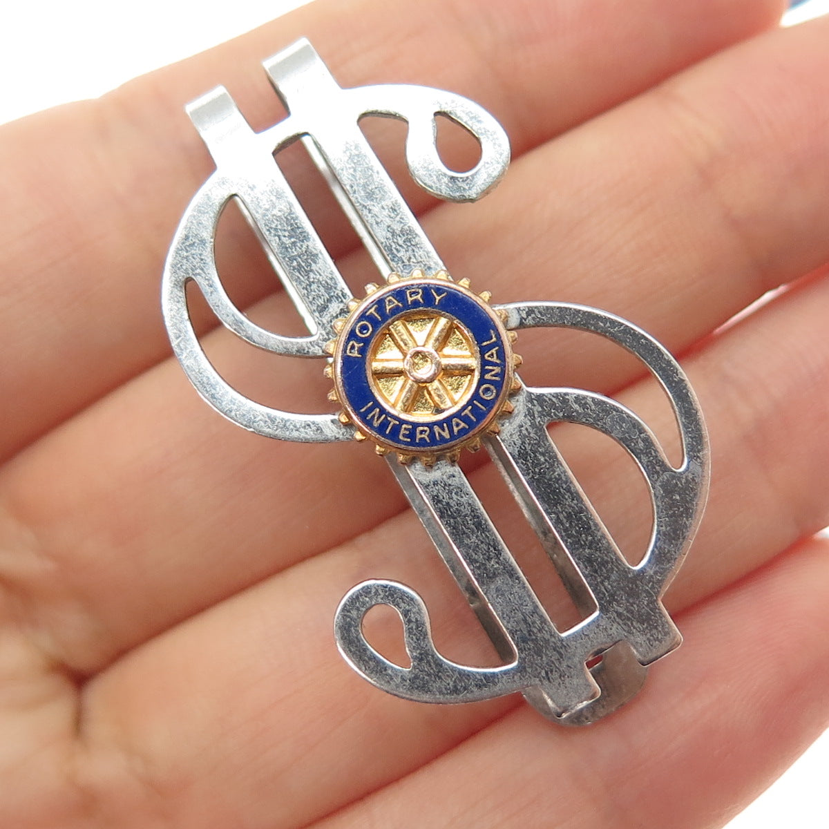 925 Sterling 2-Tone Antique Art Deco Enamel Rotary Intl. Dollar Sign Money Clip