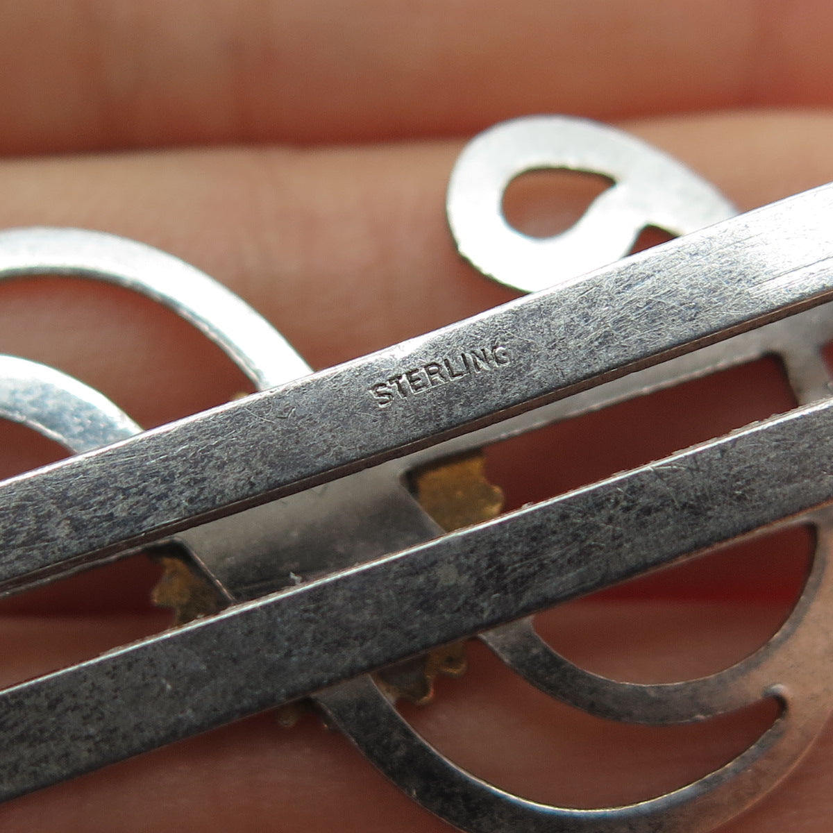 We do not disturb our vintage jewelry in order to keep its original patina leaving it to your discretion. Depending on your own taste, you can either polish it or keep it in the same condition.