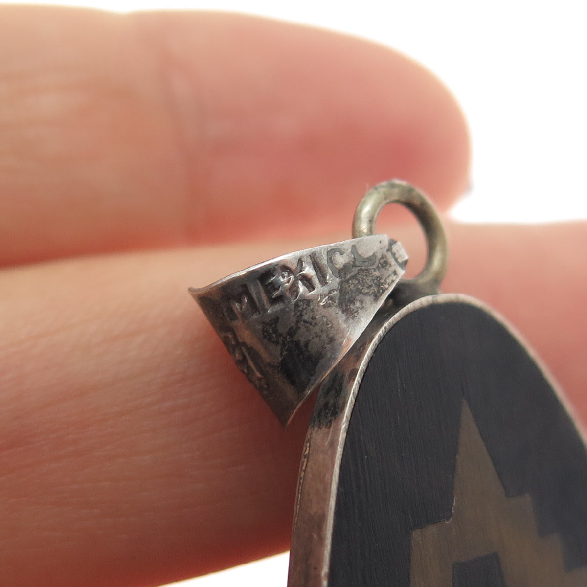 925 Sterling 2-Tone Vintage Metales Mexico Real Turquoise Inlay & Wood Pendant