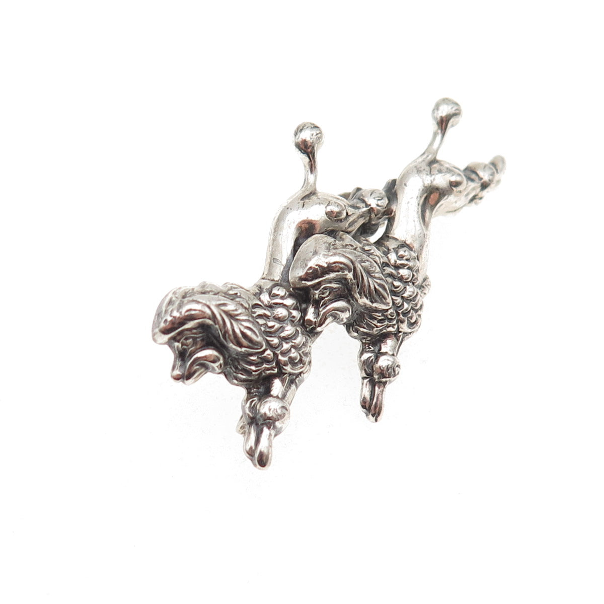 925 Sterling Antique Art Deco Poodle Dog Couple Repousse Oxidized Pin Brooch