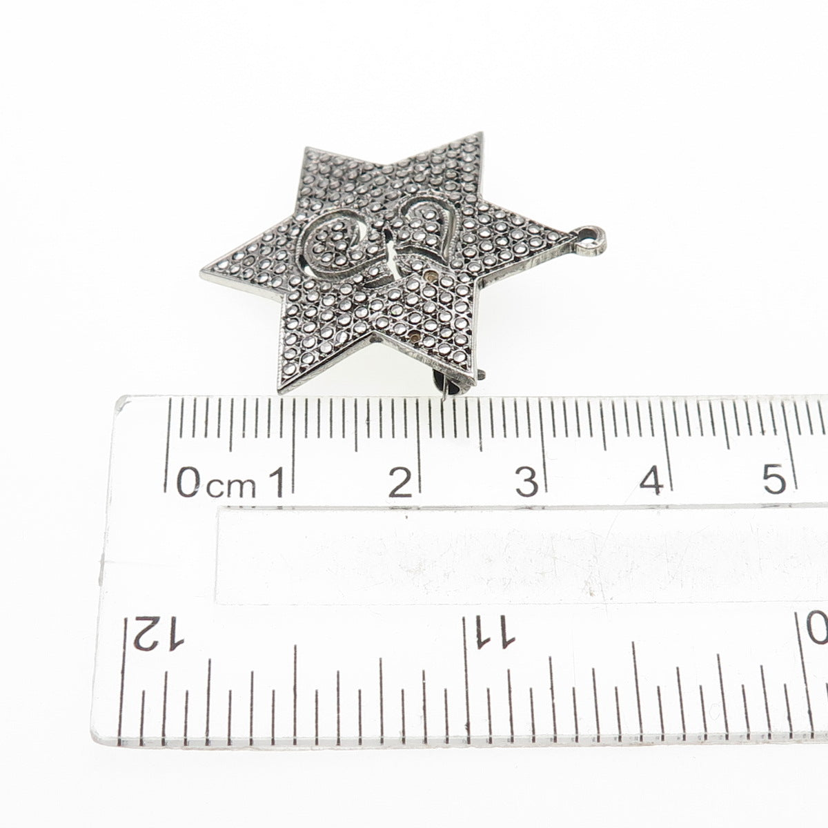 925 Sterling Antique Marcasite Letter F Star of David Pendant (missing 2 stones)