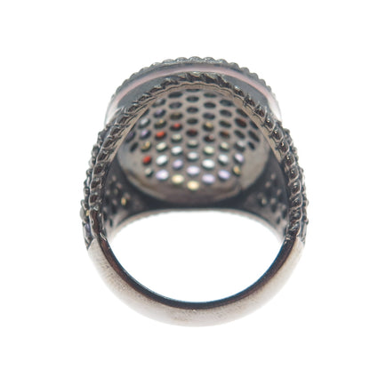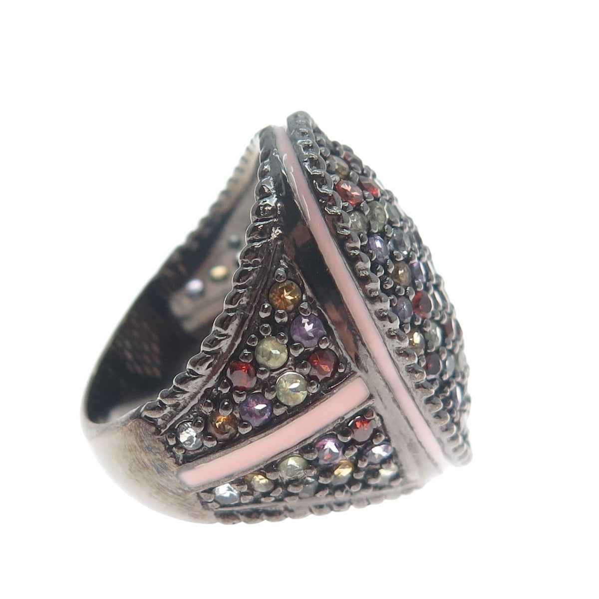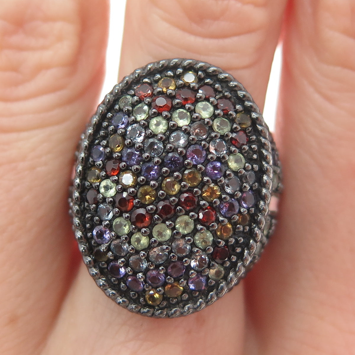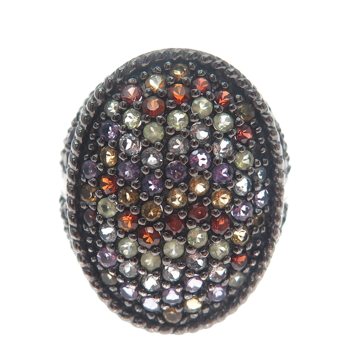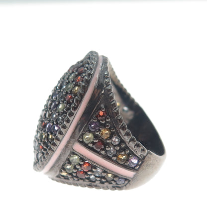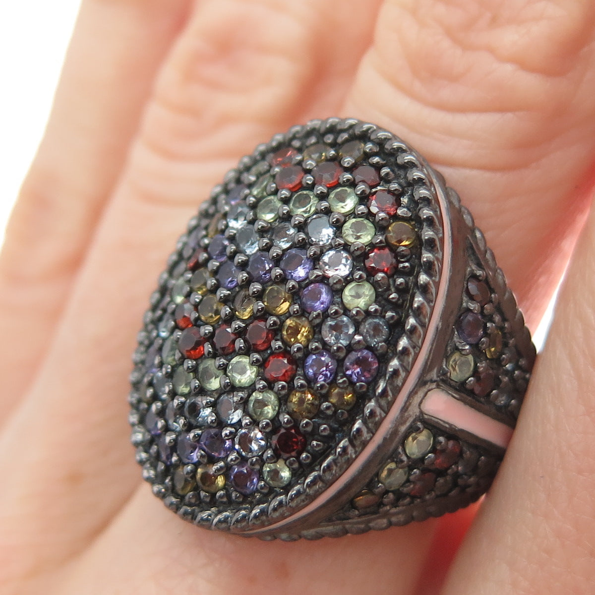 925 Sterling Black Rhodium Enamel Amethyst Garnet Citrine & Peridot Ring Size 7