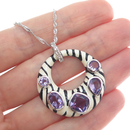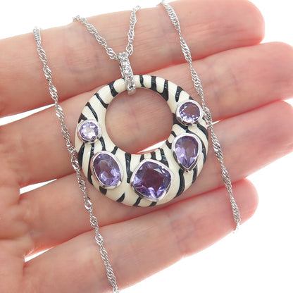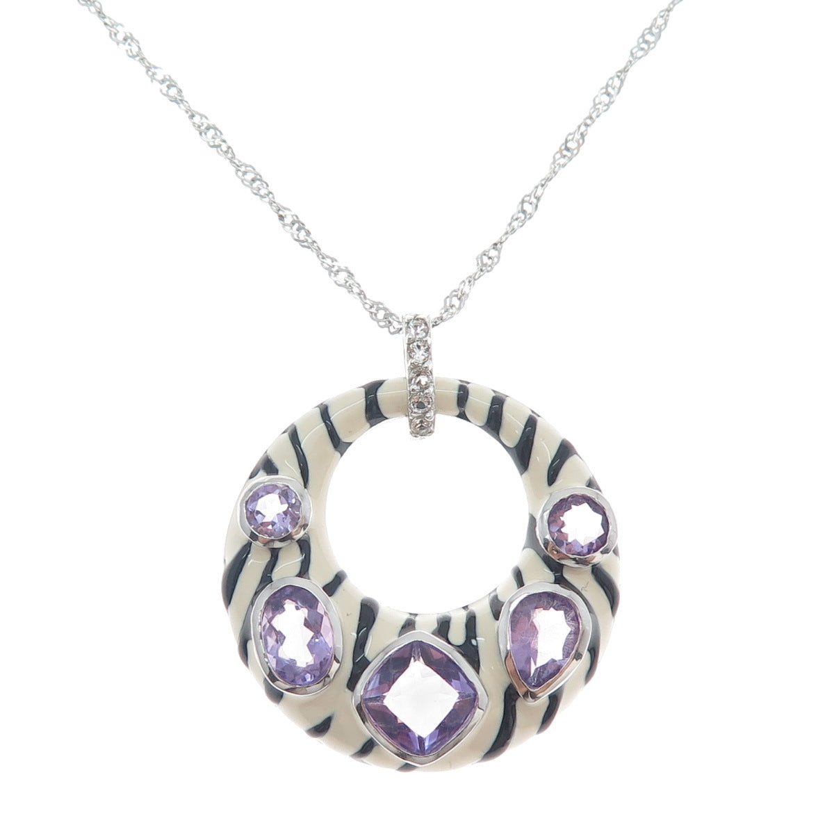 925 Sterling Enamel Amethyst Topaz Zebra Pattern Singapore Chain Necklace 18-20"